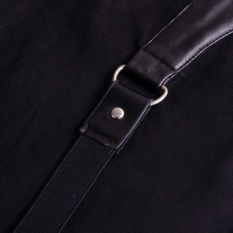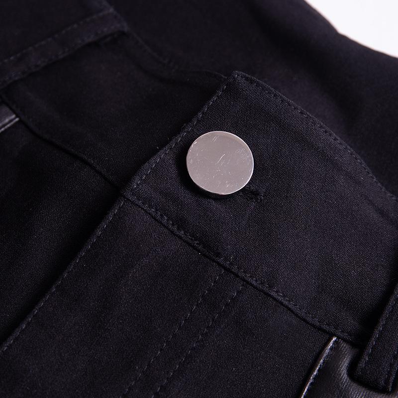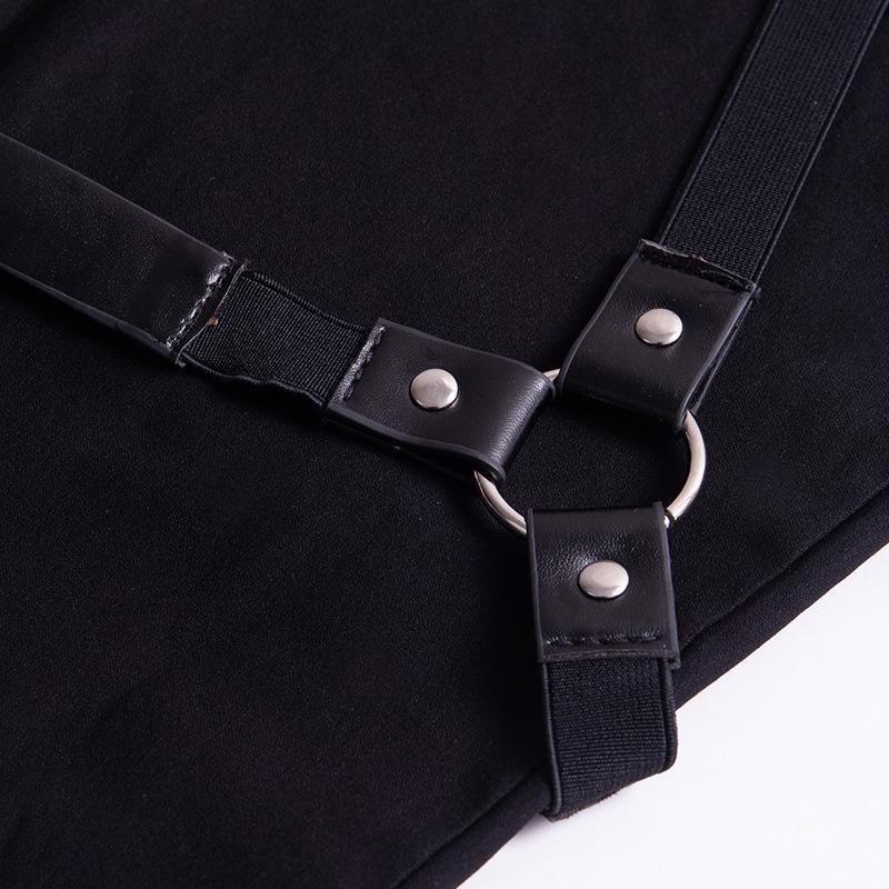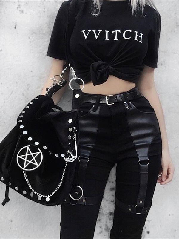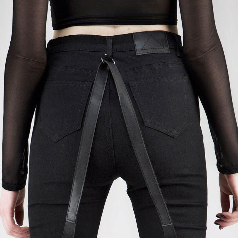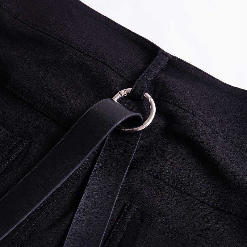 Casual Gothic Pants Women Halloween Sexy Leather Blet Patchwork Mid Cargo Pants Black Full Length Trousers