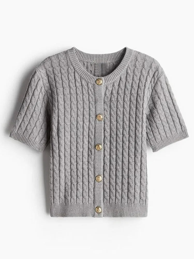 Casual knitted Single Breasted Cardigan Women Autumn Solid Short Sleeve O-neck Mini Sweater 2024 Slim Fashion All-match Top