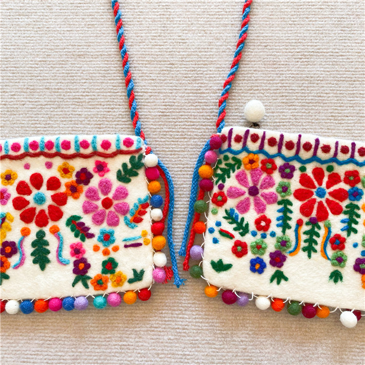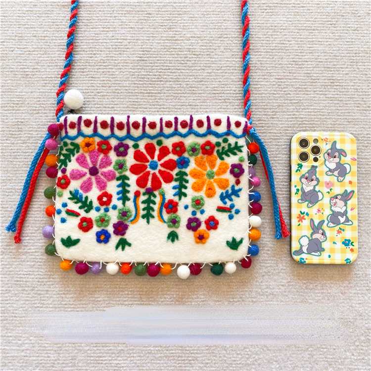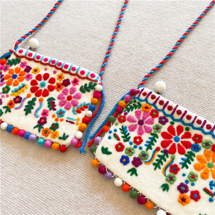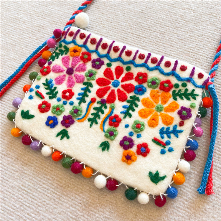 Nepal handmade wool felt floret shoulder bag Messenger bag Mori female mobile phone bag