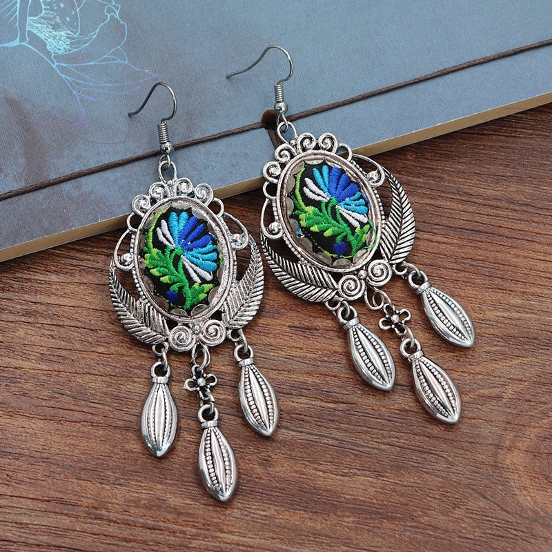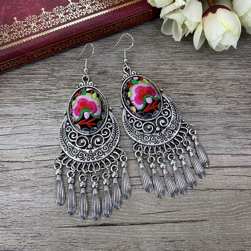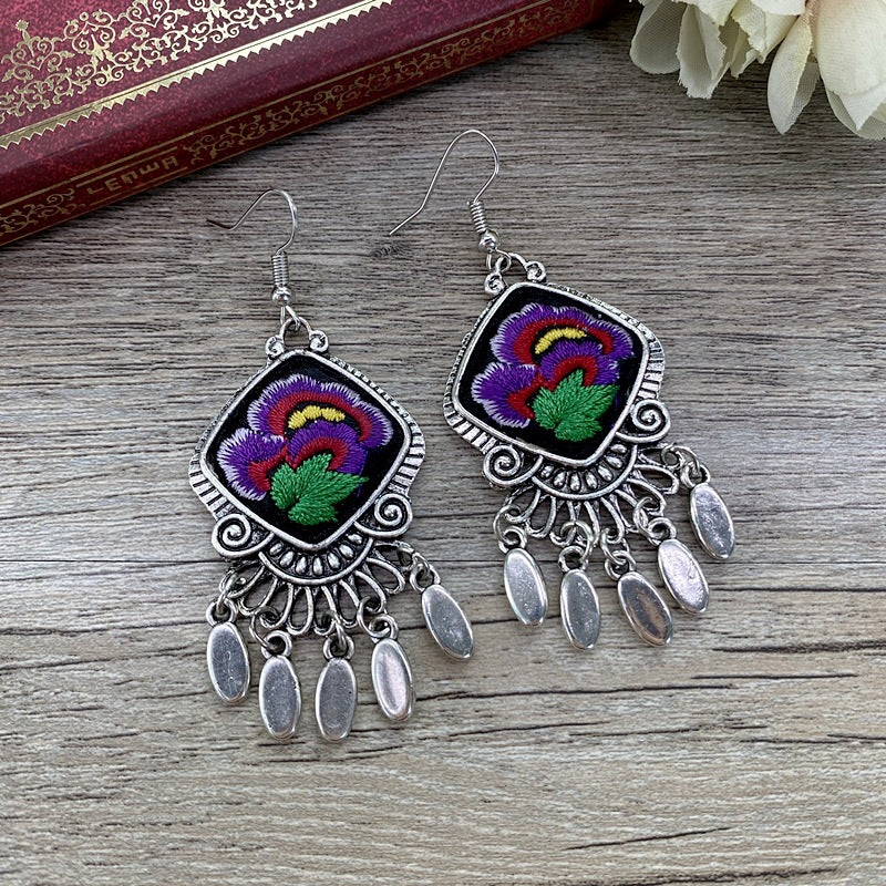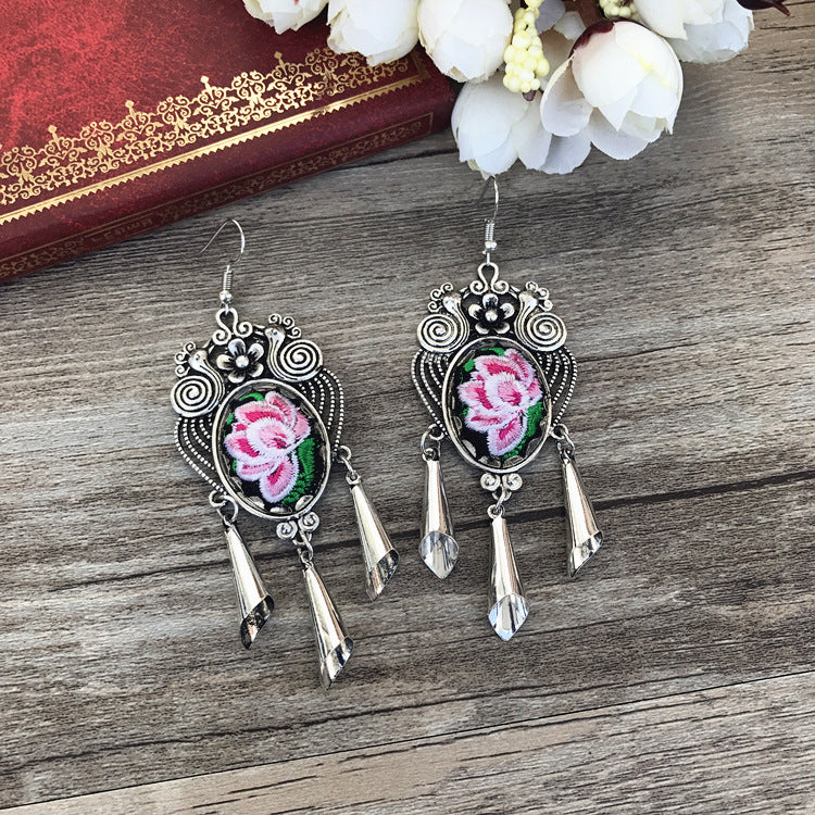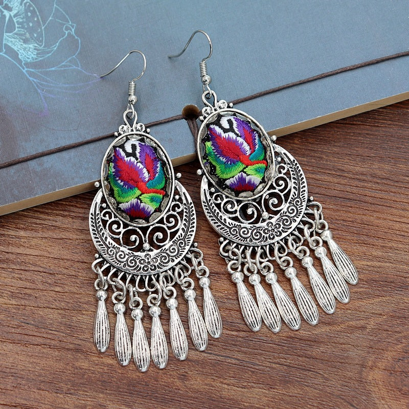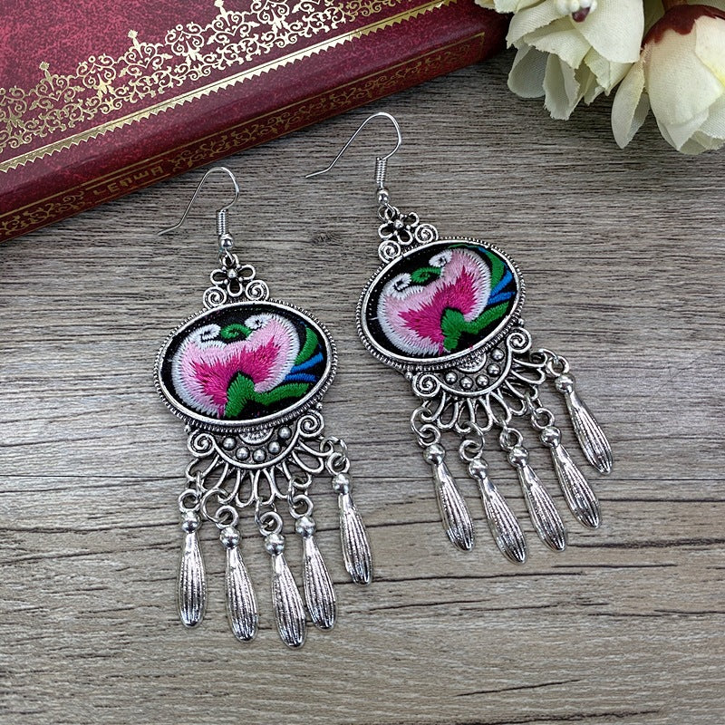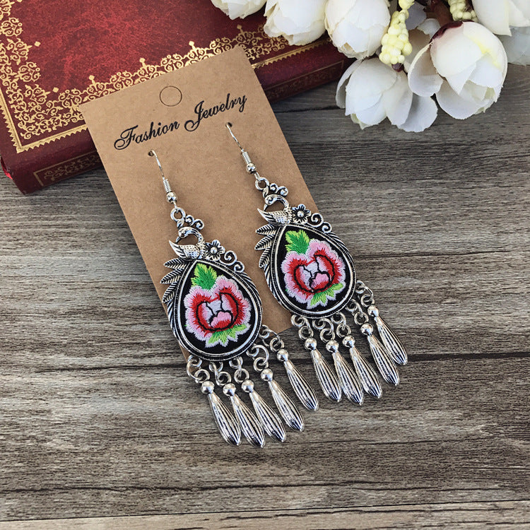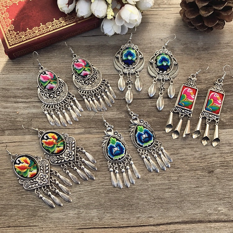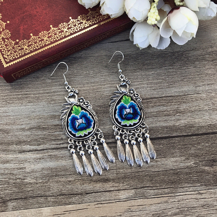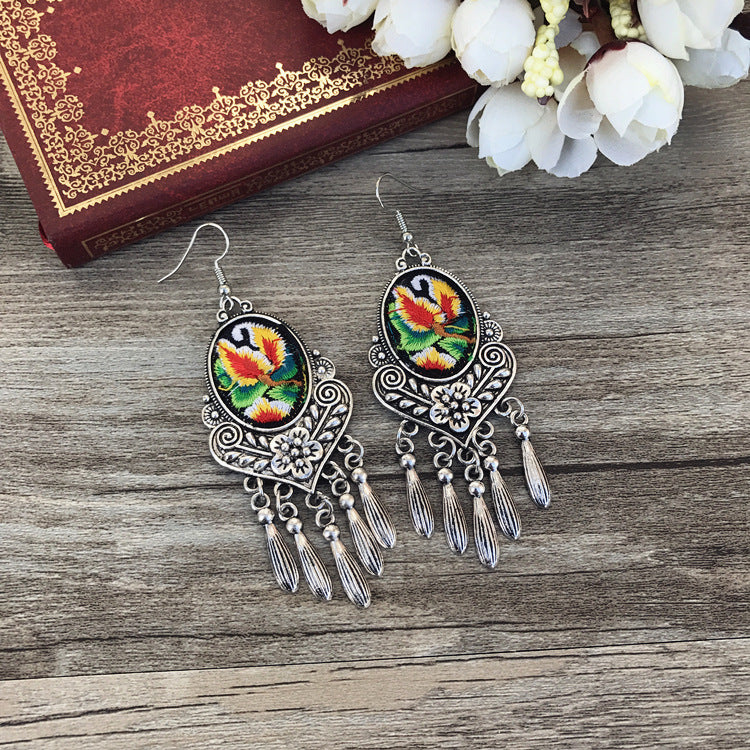 National Style Embroidered Tassel Earrings Retro Fashion Chime Earrings Ethnic Style Versatile Earrings