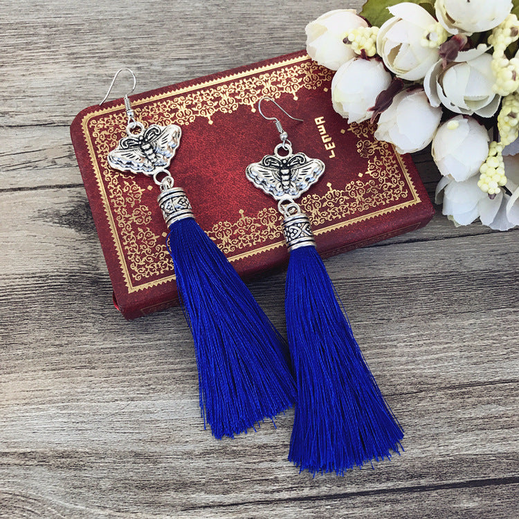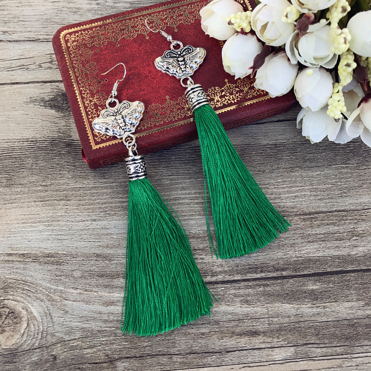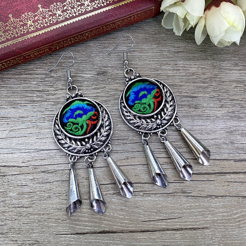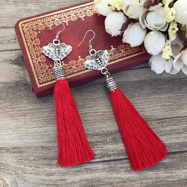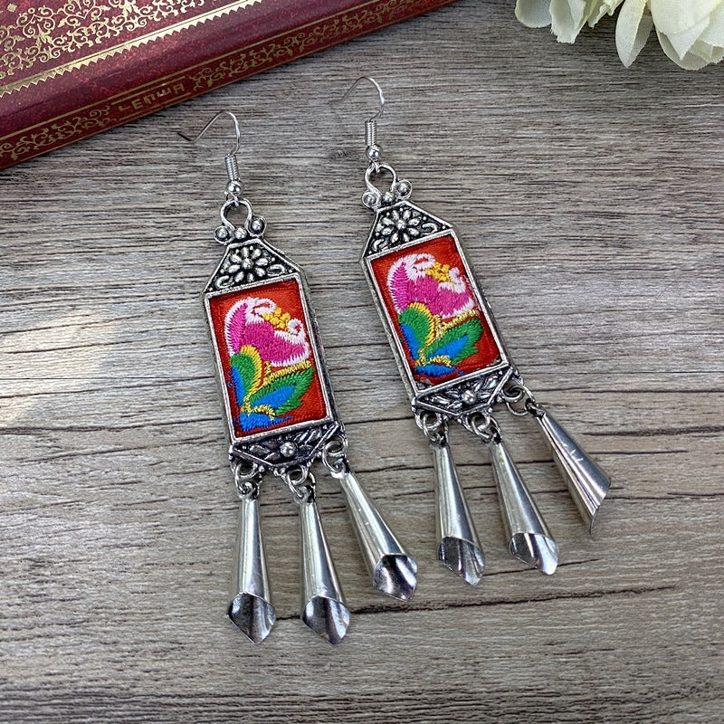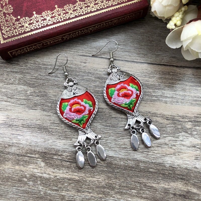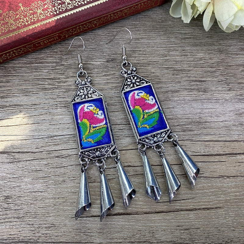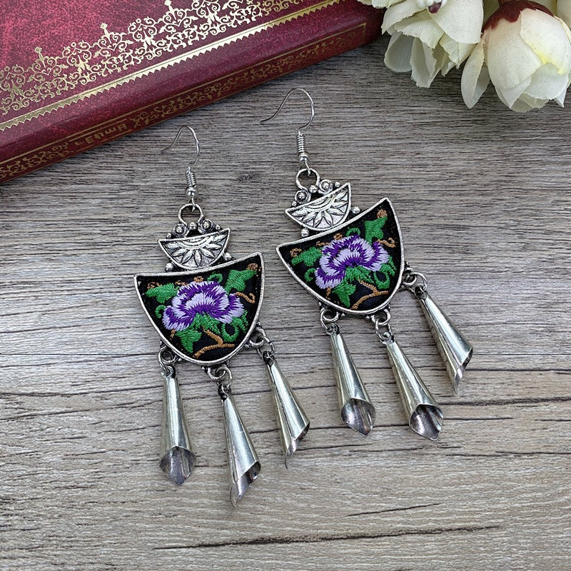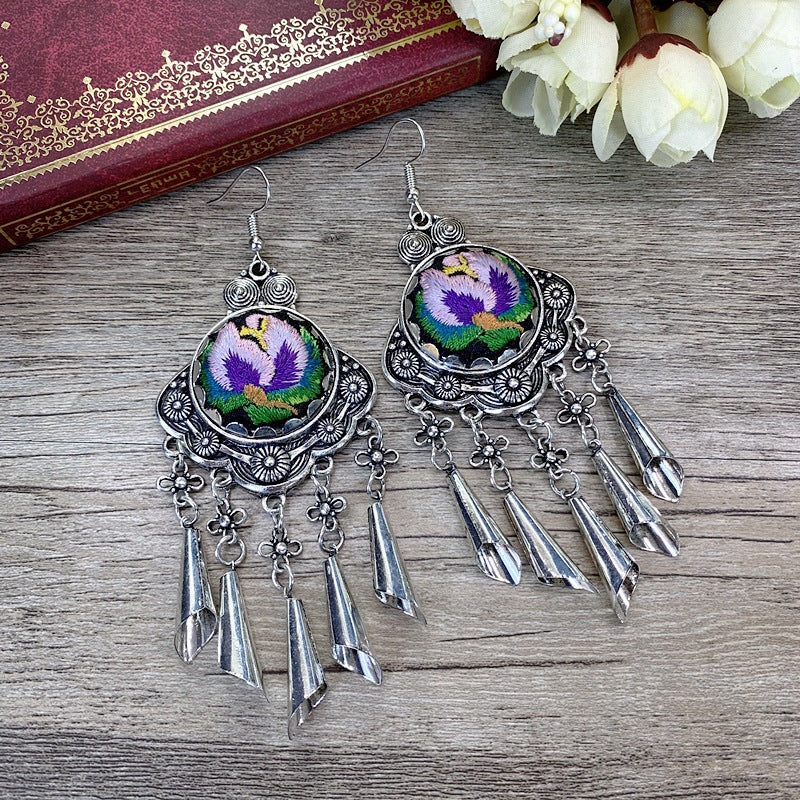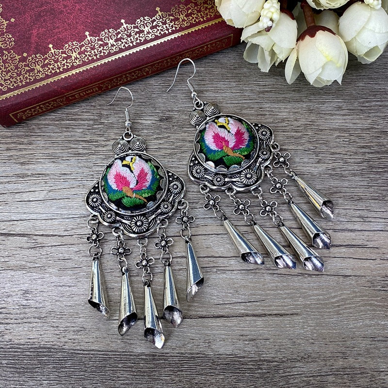 National Style Embroidered Tassel Earrings Retro Fashion Chime Earrings Ethnic Style Versatile Earrings
