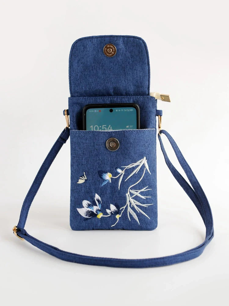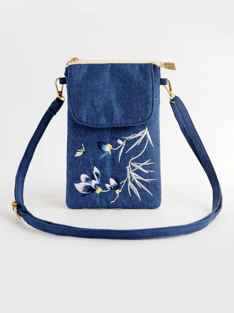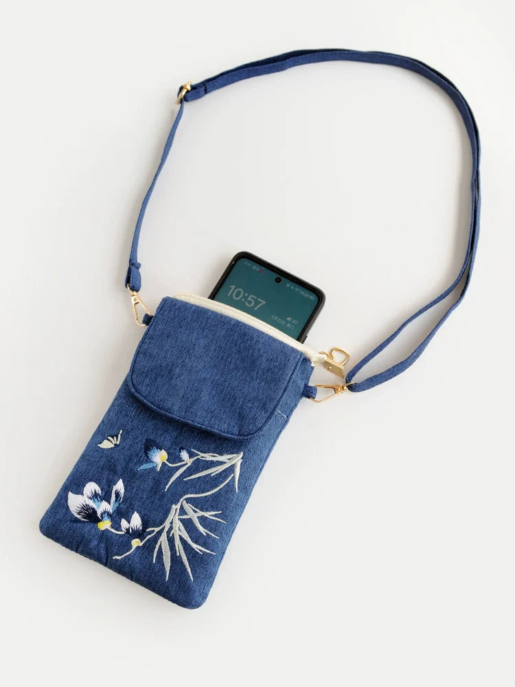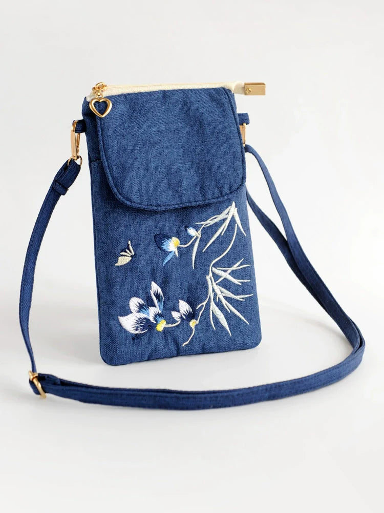 Embroidery Flower Bag Women's Cotton and Linen Cloth Messenger Bag Small Bag Change Bag Close-fitting Mobile Phone Bag Ethnic Style Mobile Phone Bag