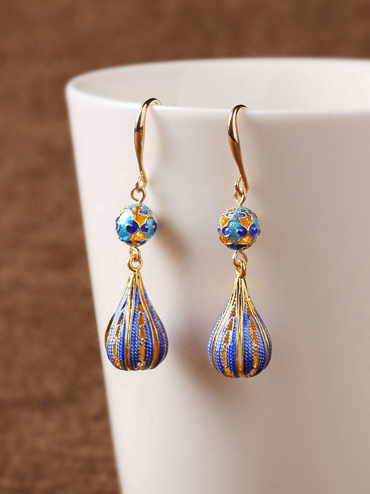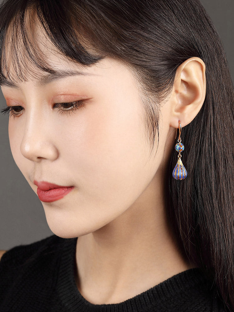 | Cloisonne Blue Earrings High-grade Female Antique Sterling Silver Earrings Material: cloisonne Weight: 3.5g |