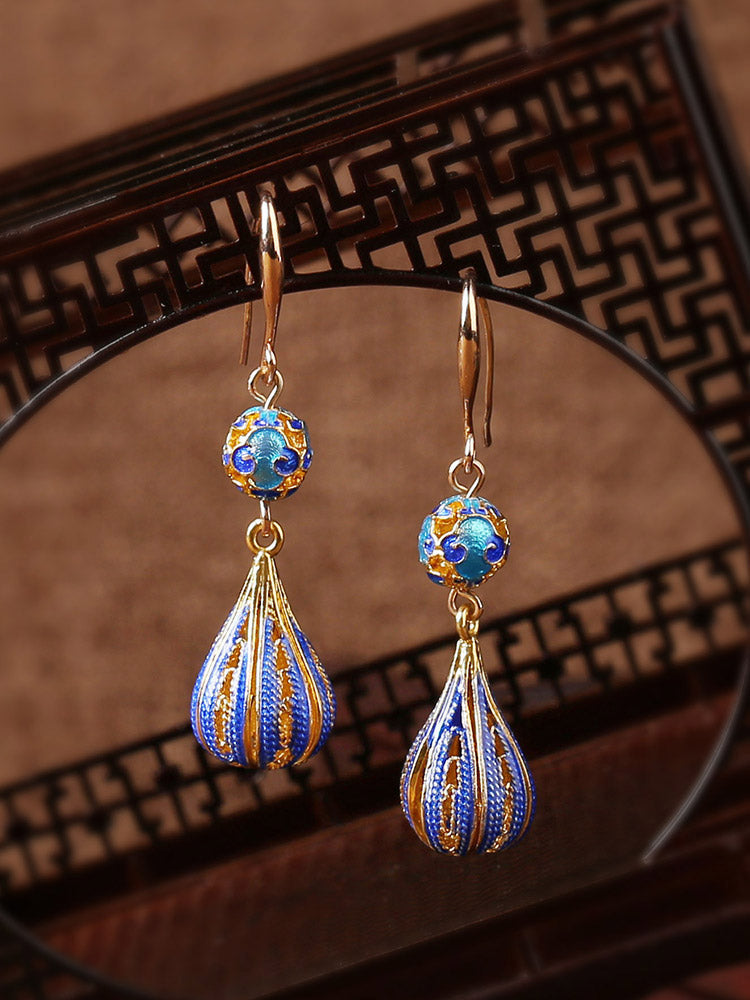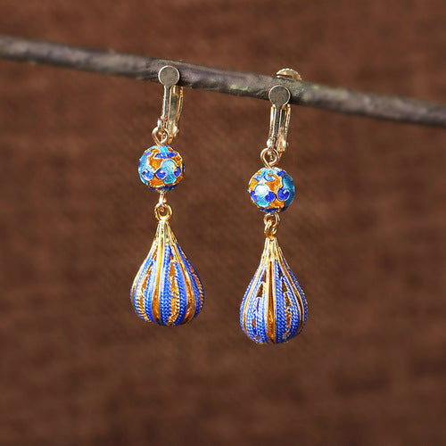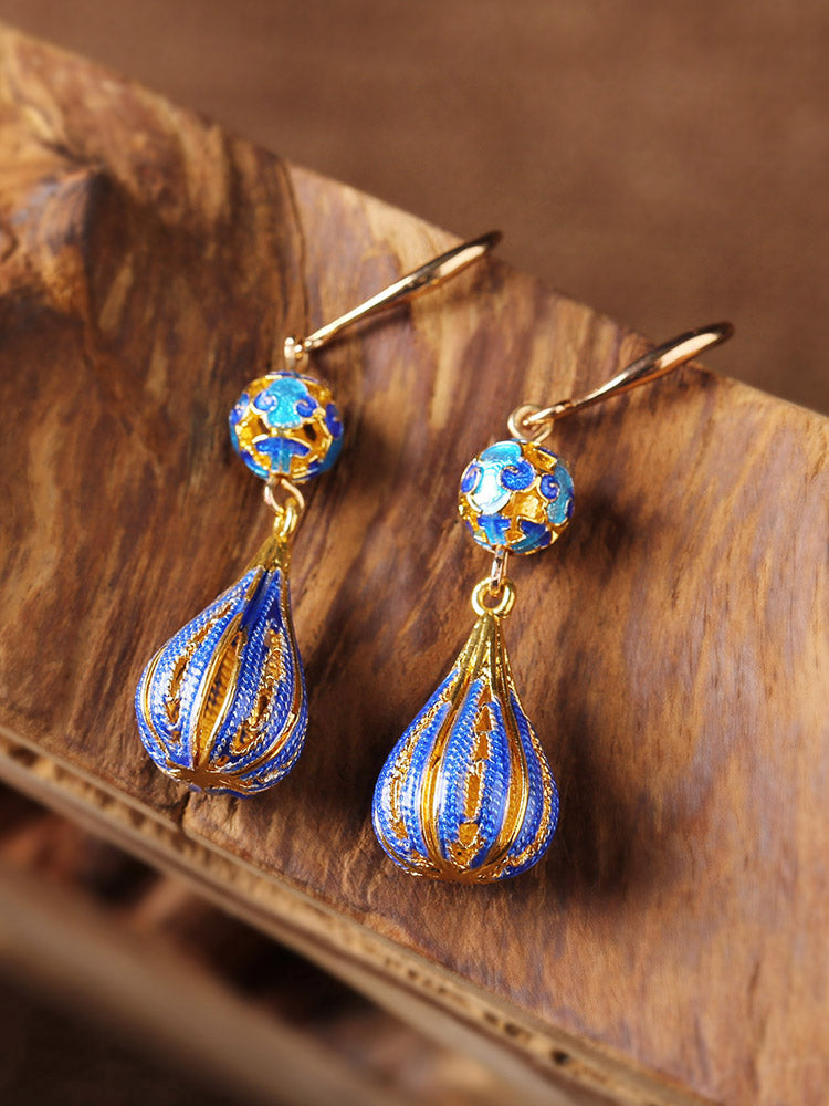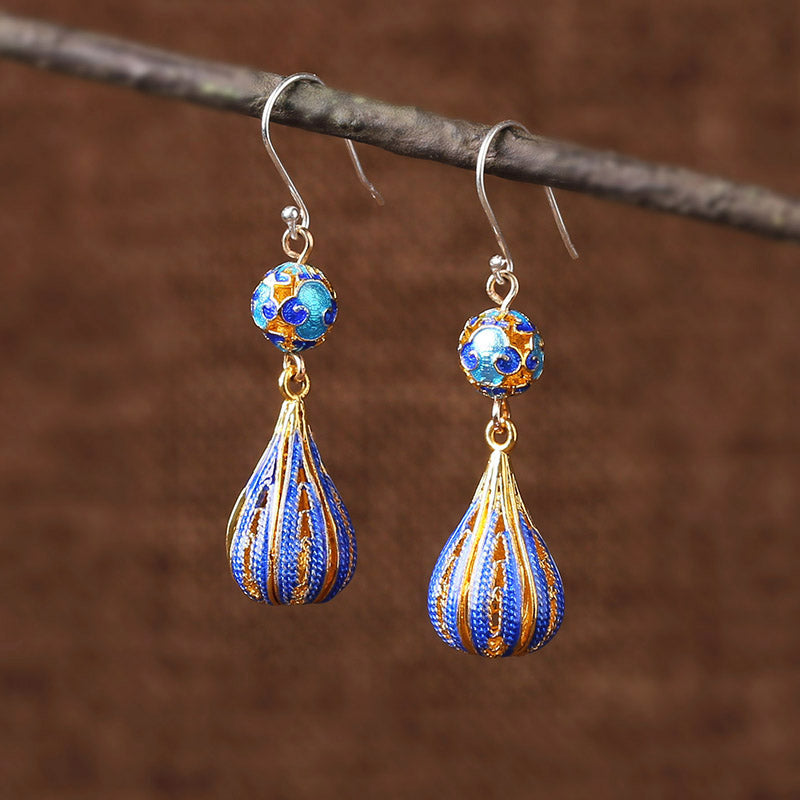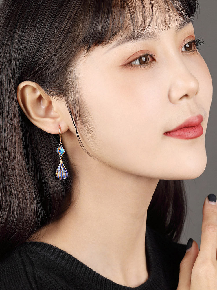 Cloisonne Blue Earrings High-grade Female Antique Sterling Silver Earrings