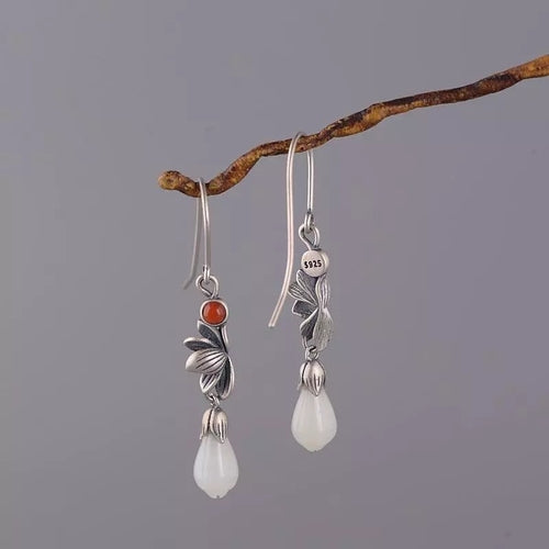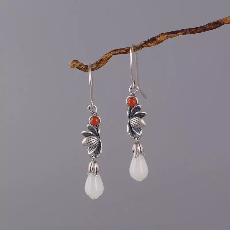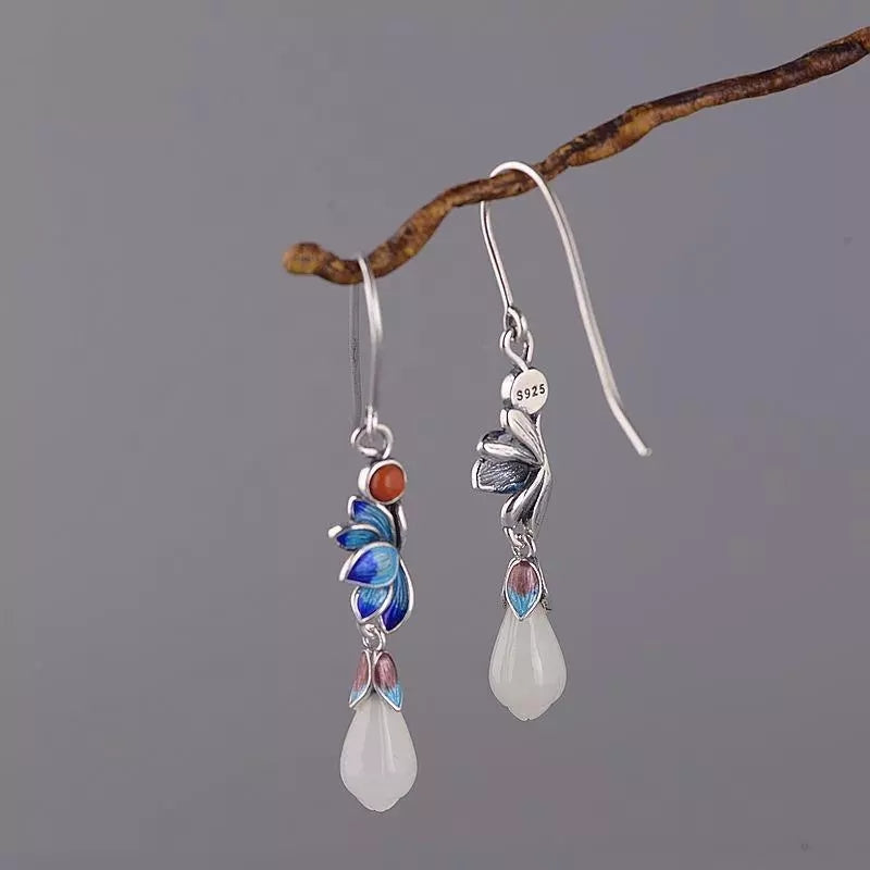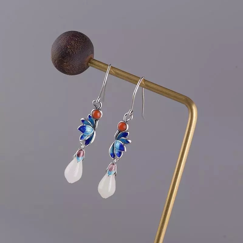 Cloisonne Earrings Female S925 Silver Retro Fashion Lotus Magnolia Flower Imitation Red Earrings