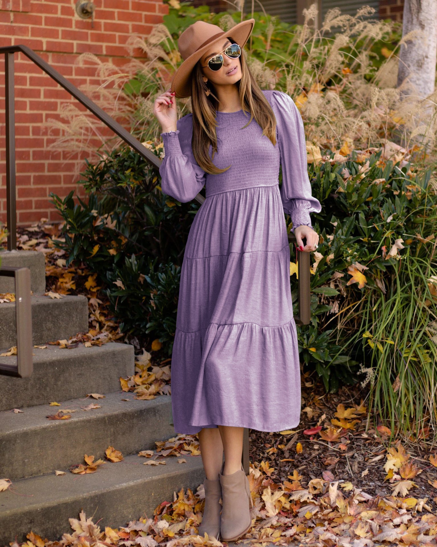 Autumn New Women Elegant Retro French Round Neck High Waist Dress Skirt