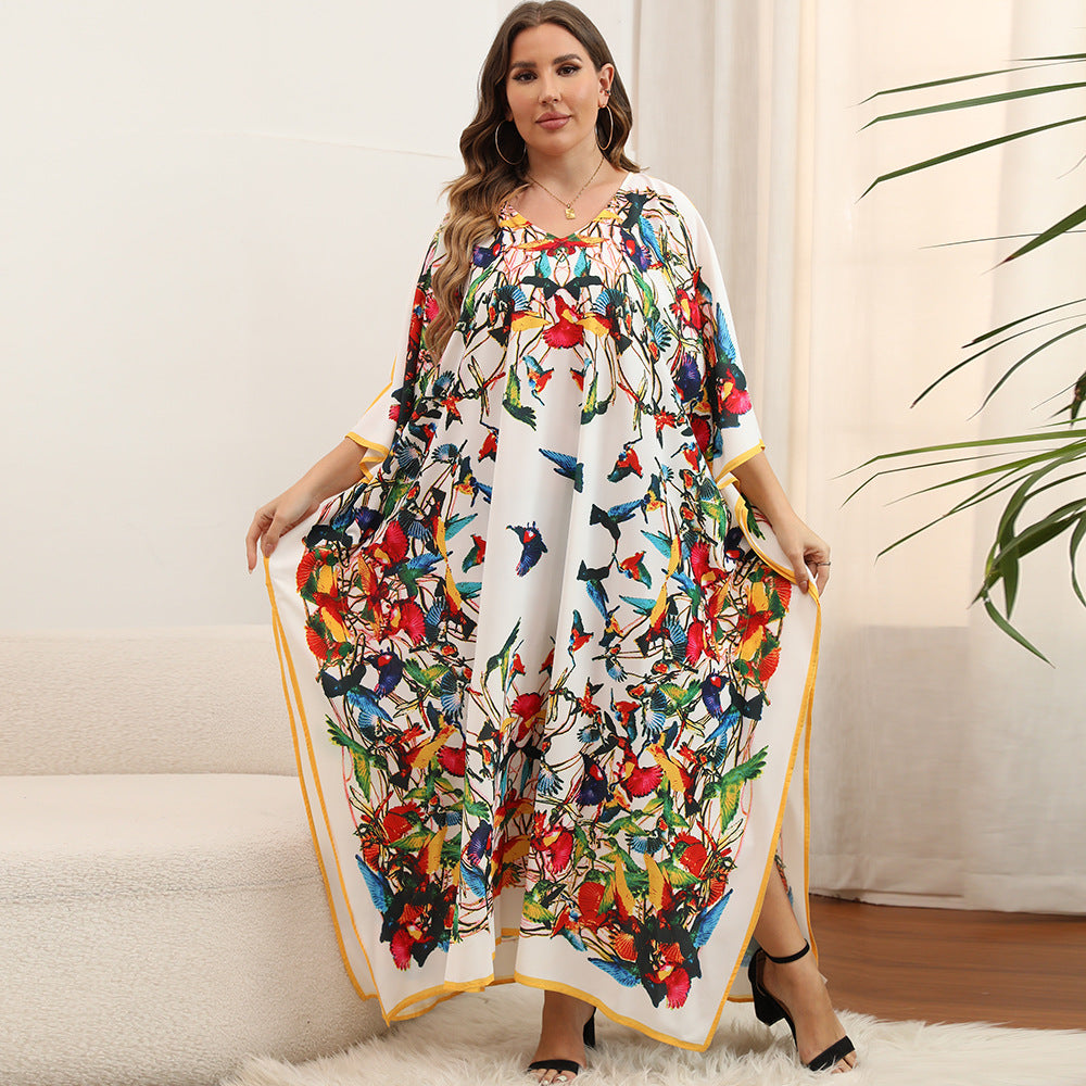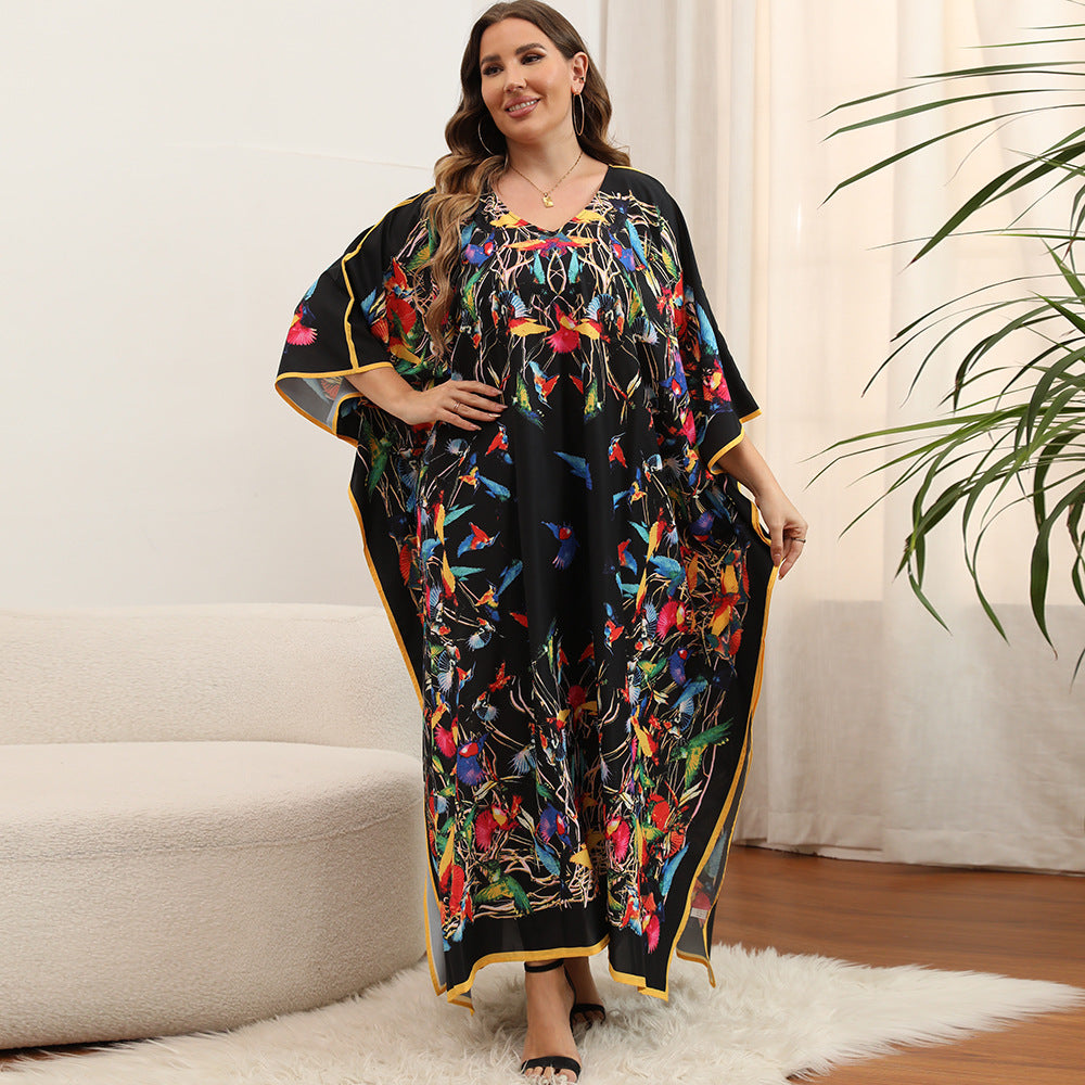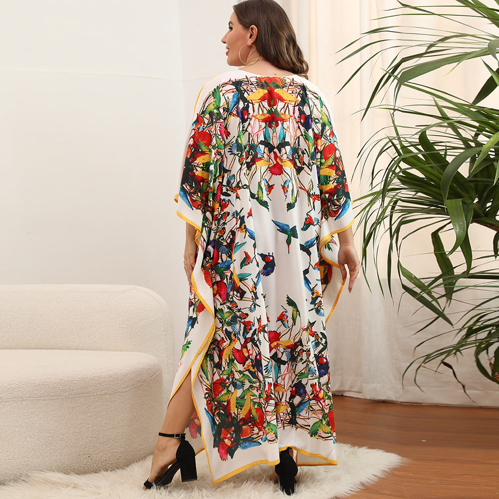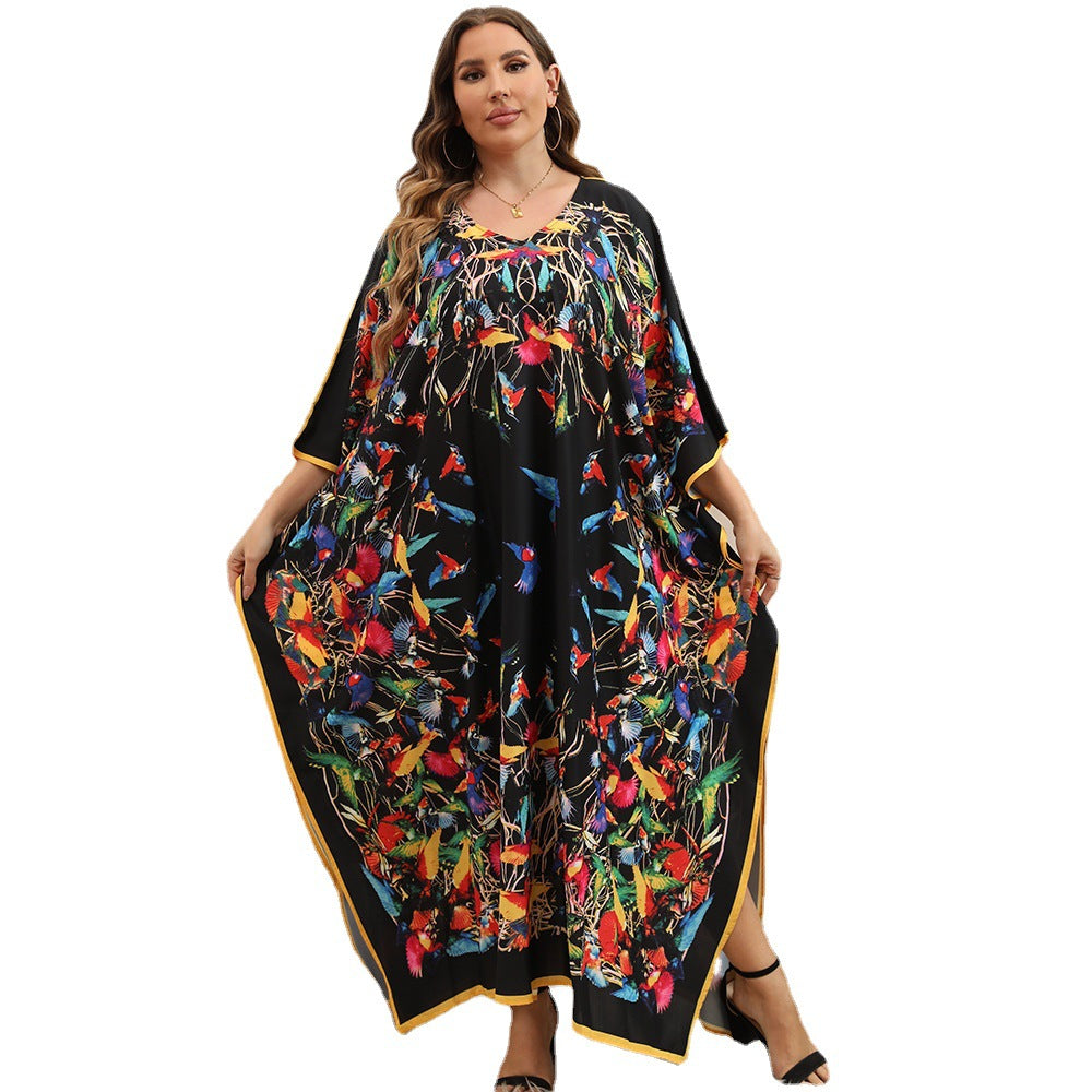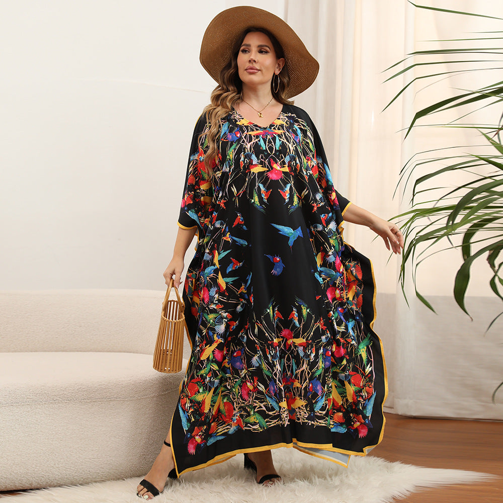 Plus Size Dress Beach Smock Bohemian Vacation Gown Bikini Sun Protection Cover up