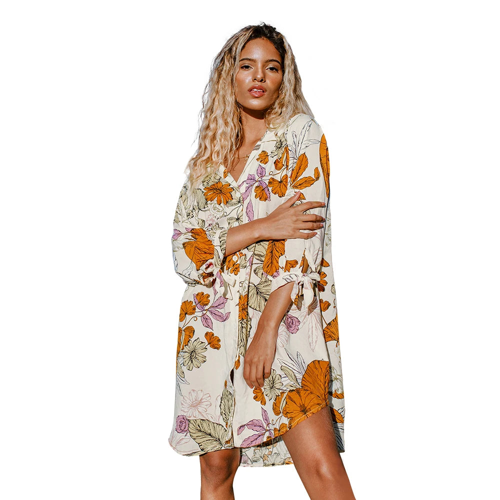 Some things in life are best kept short and sweet like our Floral Buttoned Shirt Dress. With a button-down center front and tie at the cuff for an adjustable fit.