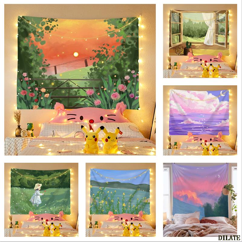 Cute Tapestry Wall Hanging Wall Decor view hanging cloth cute decoration painting tapestry net red background cloth dormitory