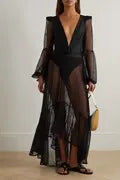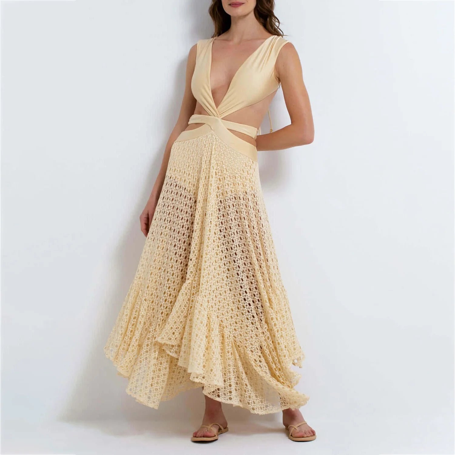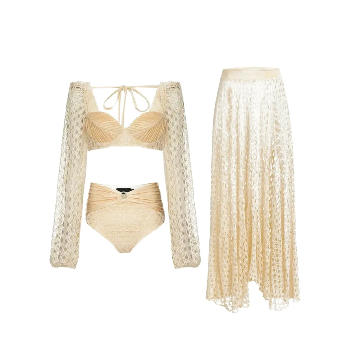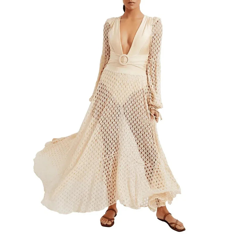 Cutout Stretch Knit Swimsuit 2024 Women's Swimwear One Pieces Beach Outfits Luxury Long Sleeve Cover-Ups Bathing Suit Beachwear