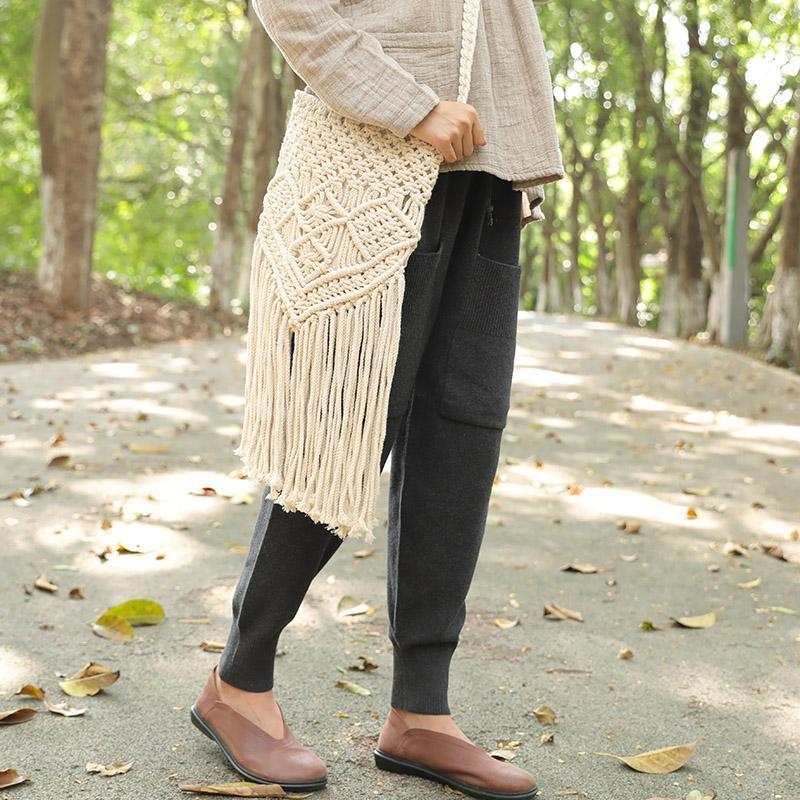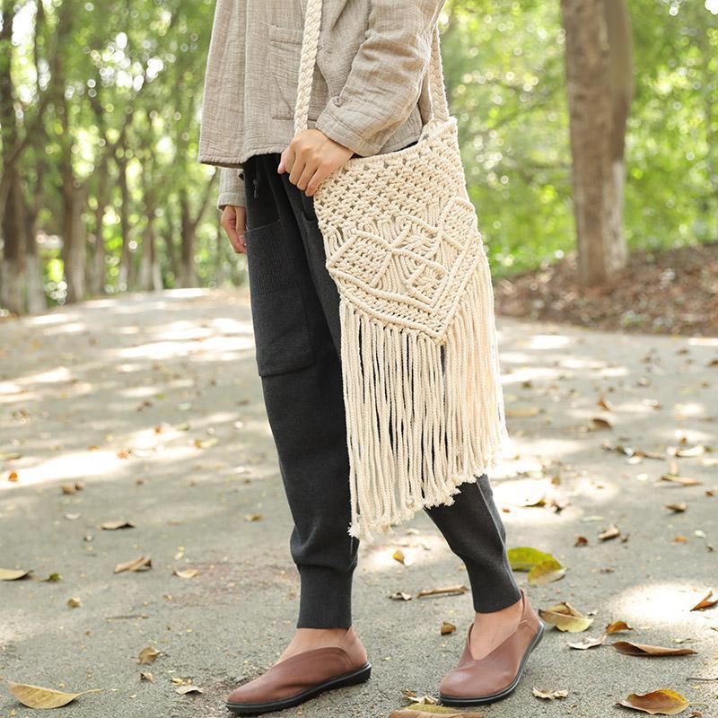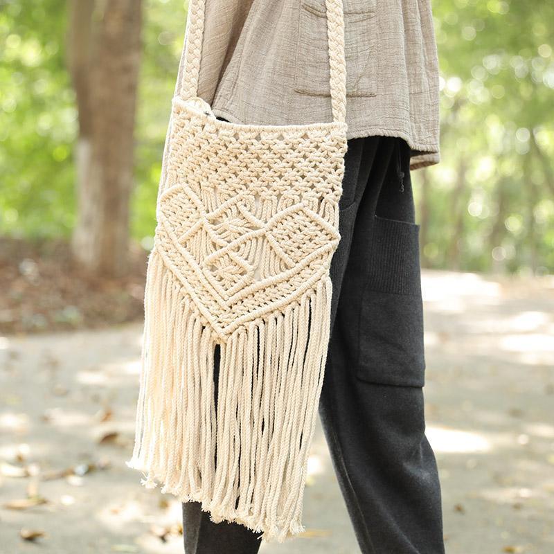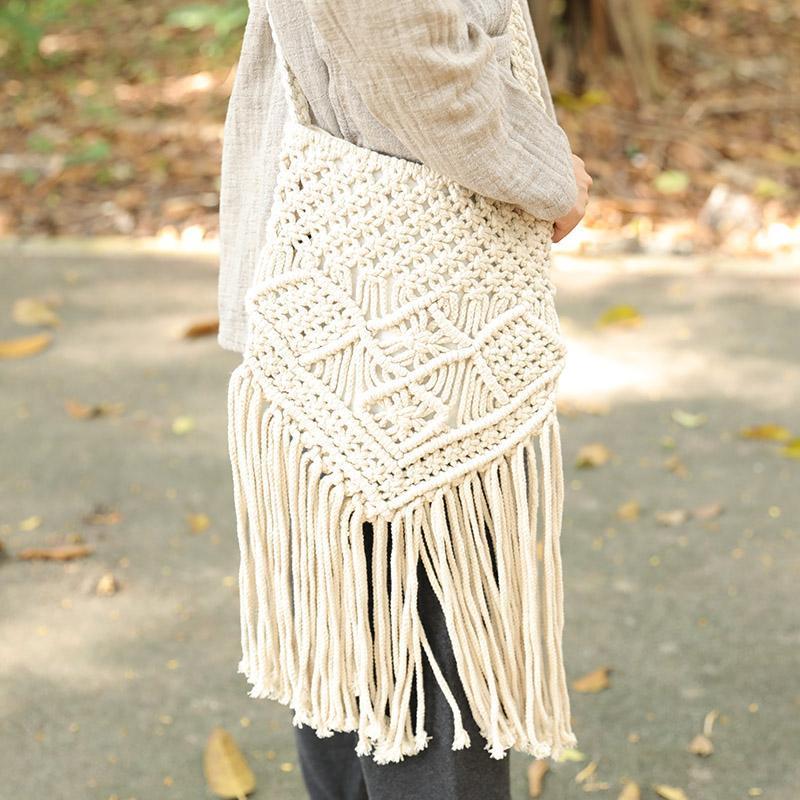 Delicate Knitted White Tassel Zipper Shoulder Bag For Women