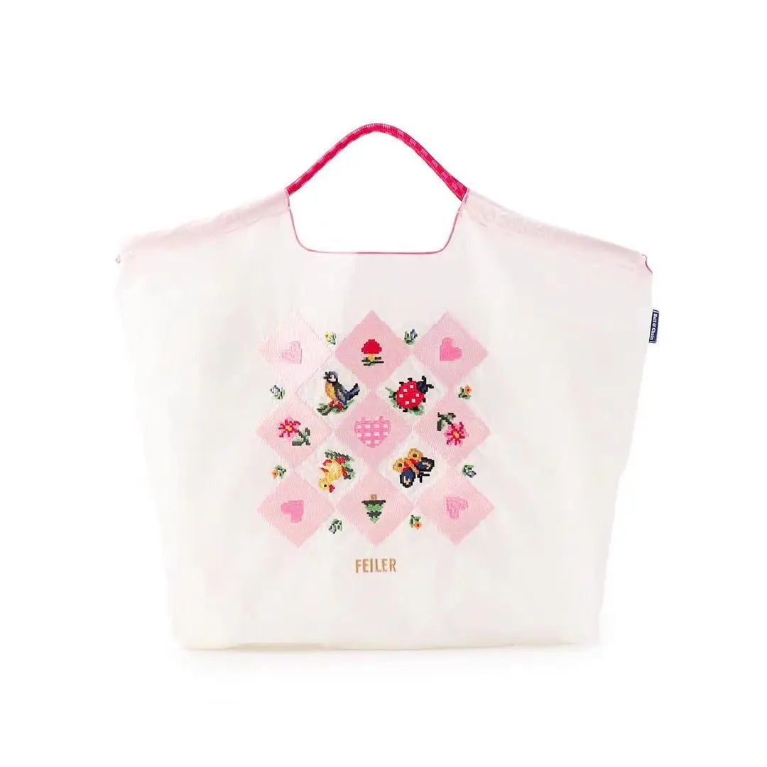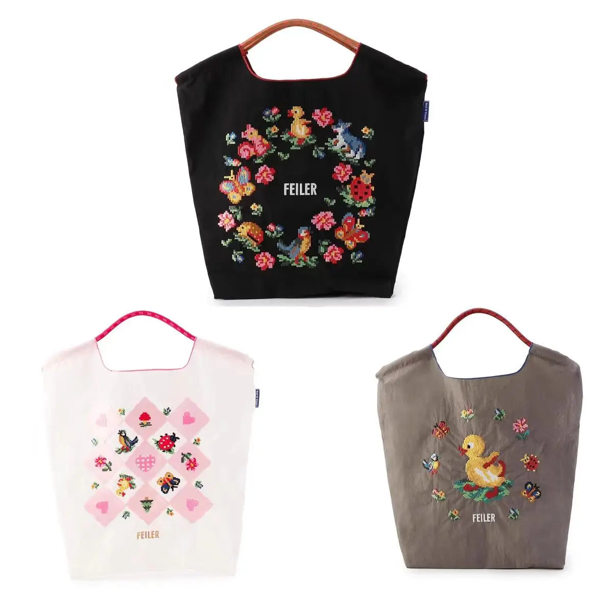Draw String Hand Bag Oxford Cloth Embroidery Tote Reuseable Nylon Bag Portable Shoulder Bag Korea Bag Foldable Bag Embroidery