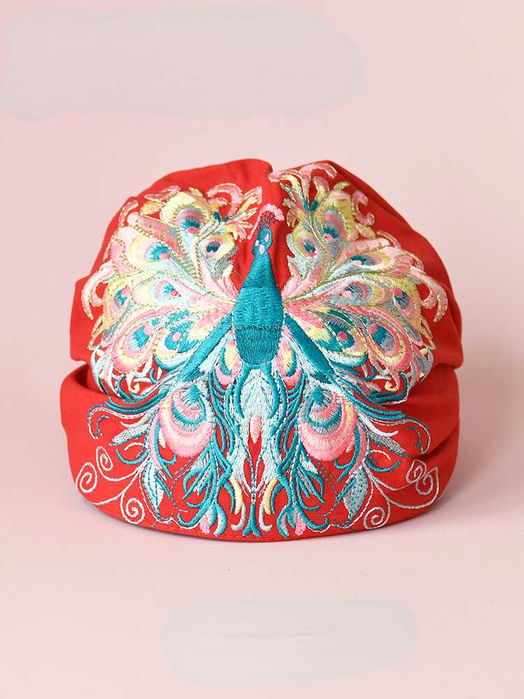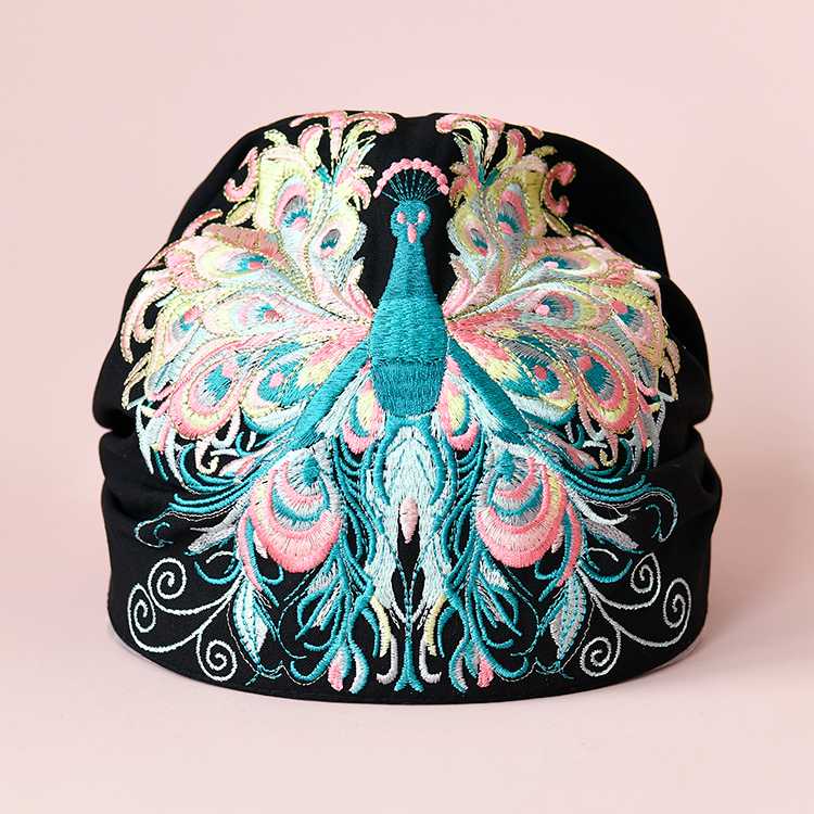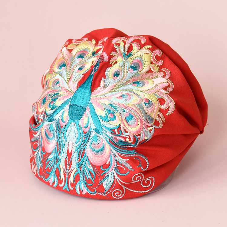 Embroidered Headgear Spring and Autumn Thin Disc Hair Headscarf Hat Ethnic Style 2024 New White Hair Hat