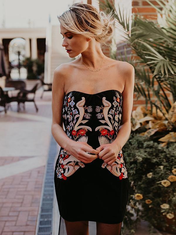 Embroidered Off Shoulder Split-joint Evening Dress