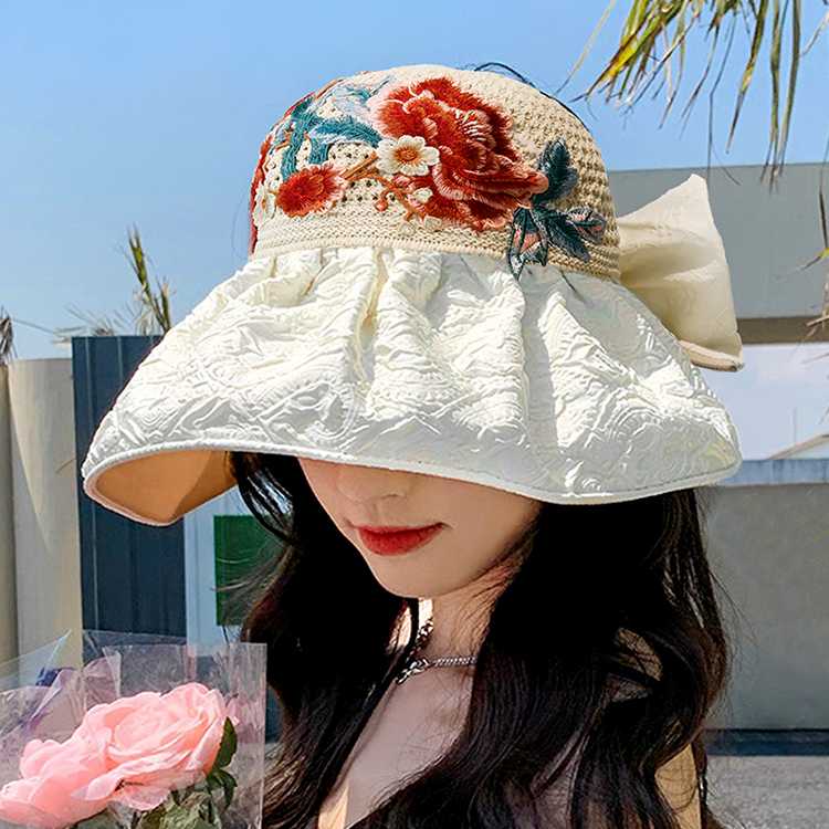 Embroidered Sun Hat Female Summer UV-proof Shell Shading Empty Top Cover Face Sun Hat