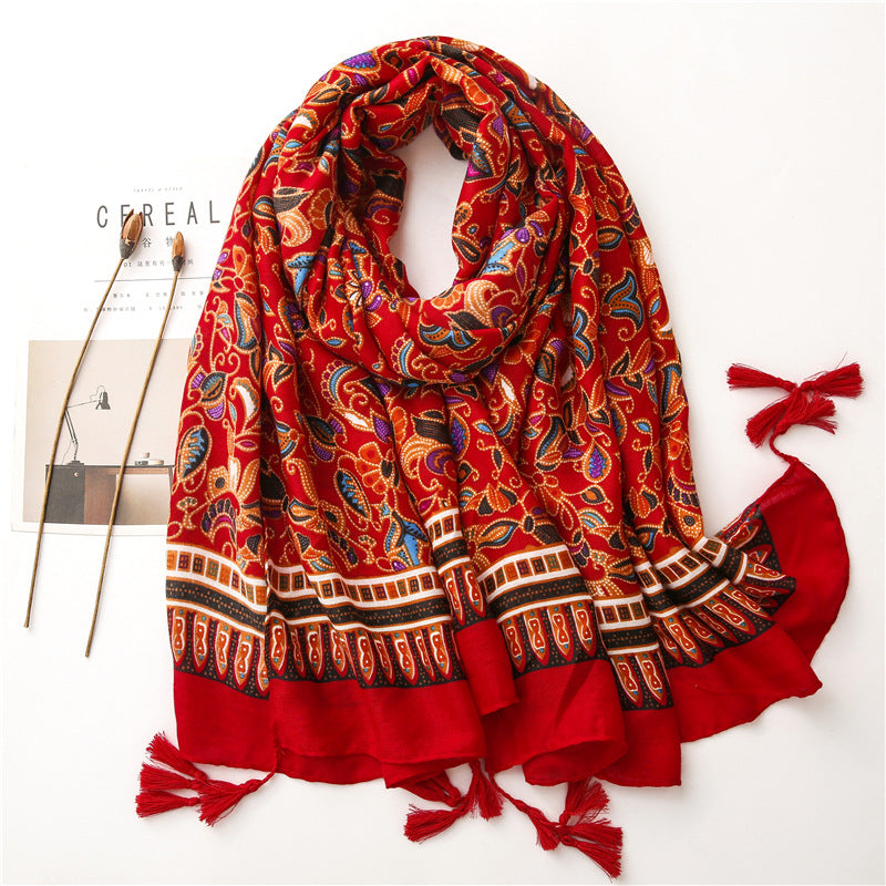 Ethnic style cotton linen Scarf Tibet Grassland Bohemian matching silk Red scarf
