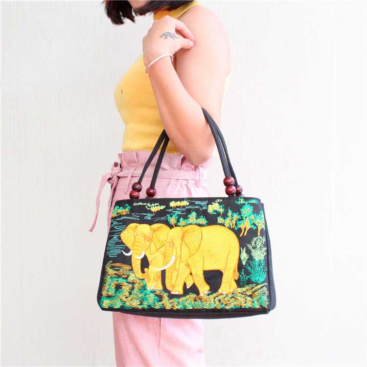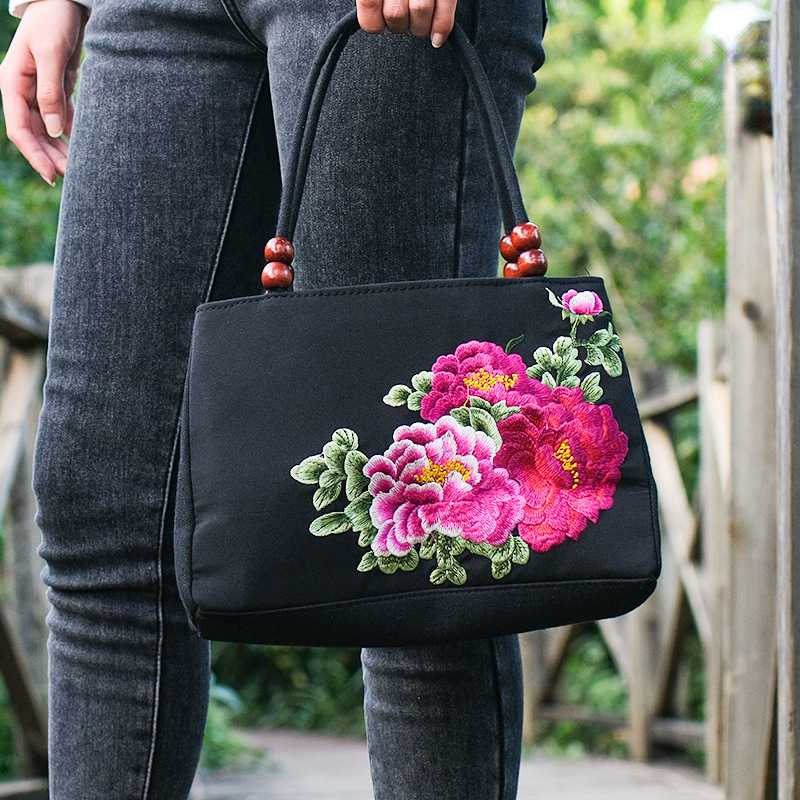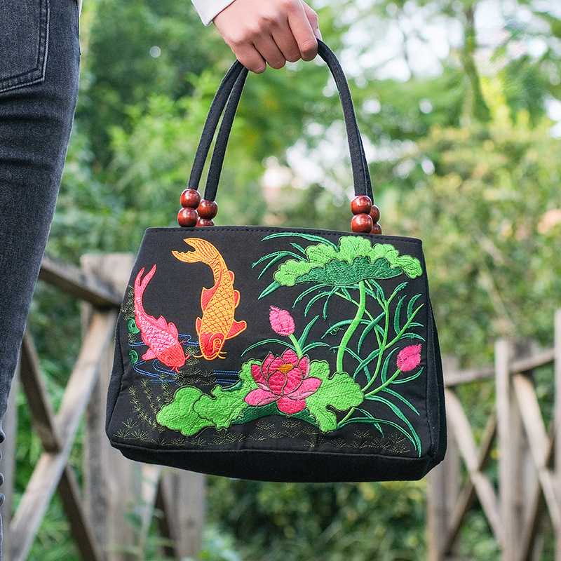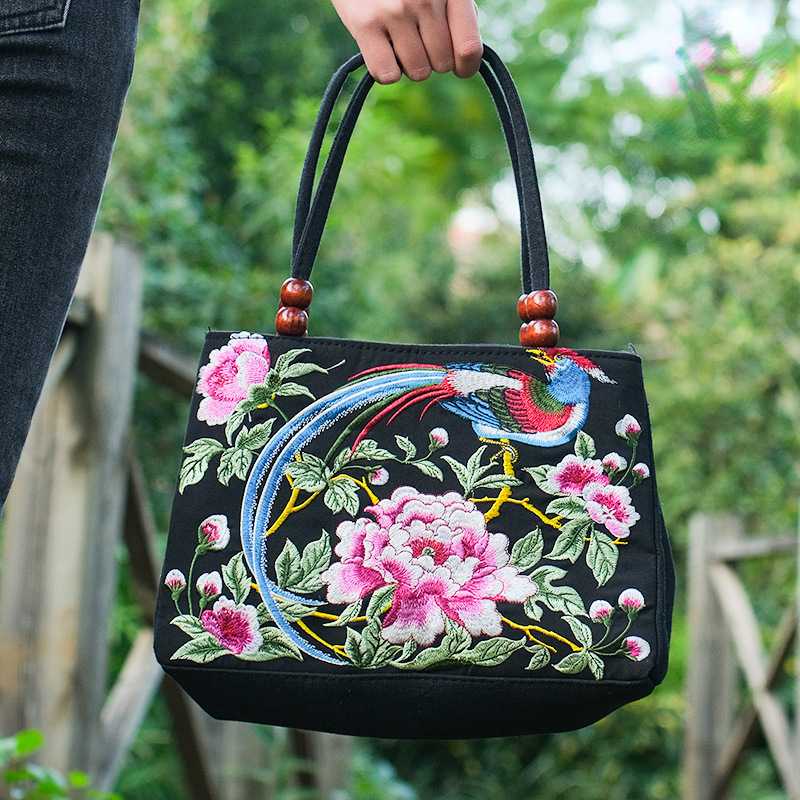 Ethnic Style Embroidered Bags for Women's Handheld Embroidery with Two Zippers Canvas Leisure Bags