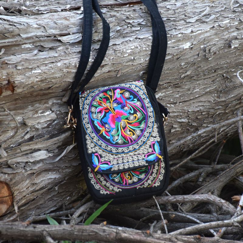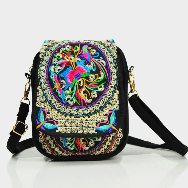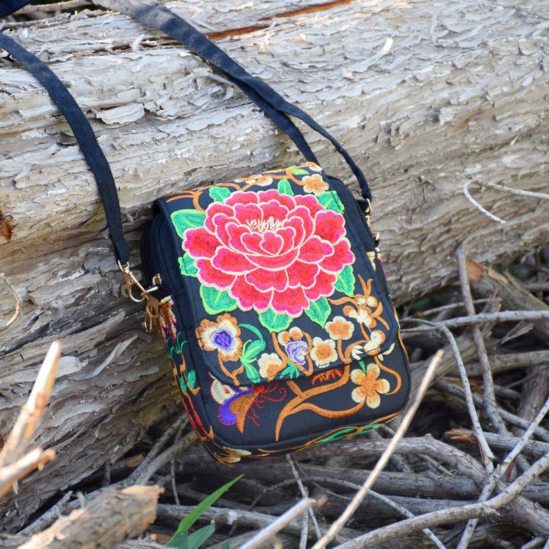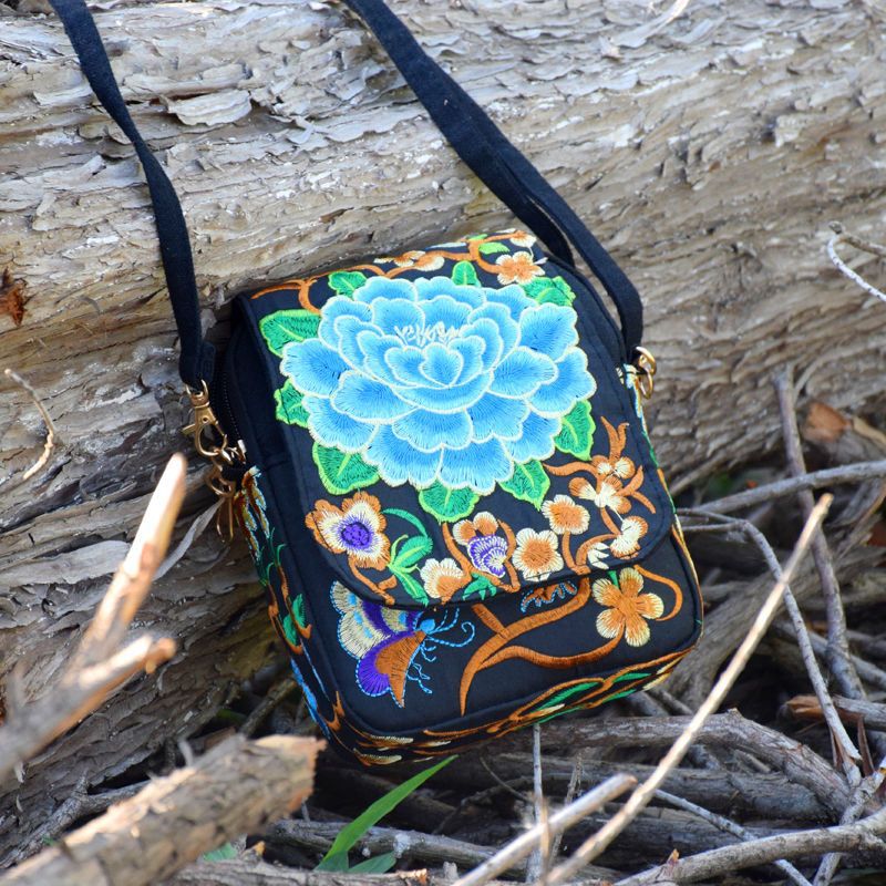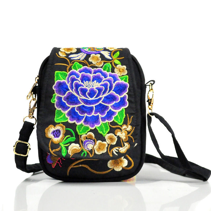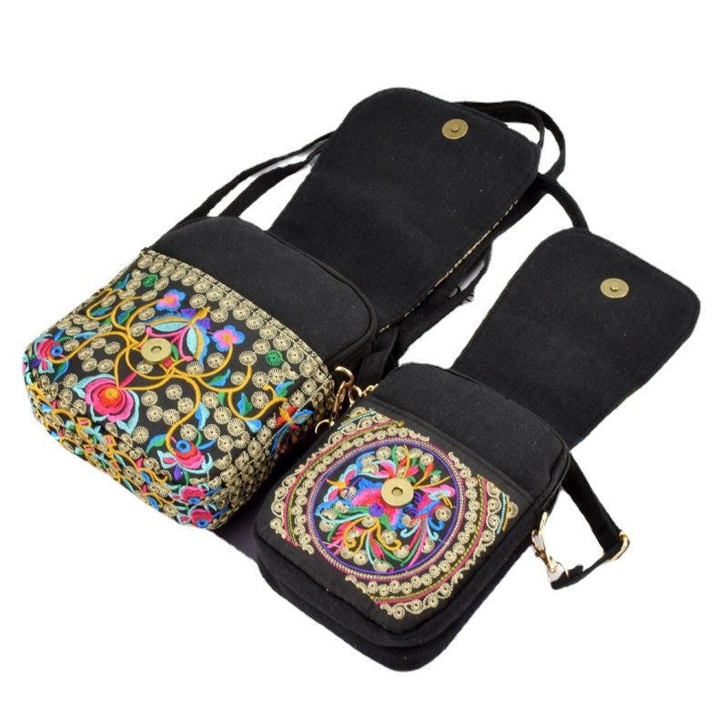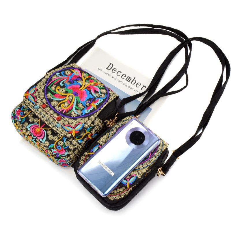 Ethnic Style Bag Small Bag Women's New Mini Diagonal Canvas Small SquareFlower Versatile Mobile Phone Coin Purse