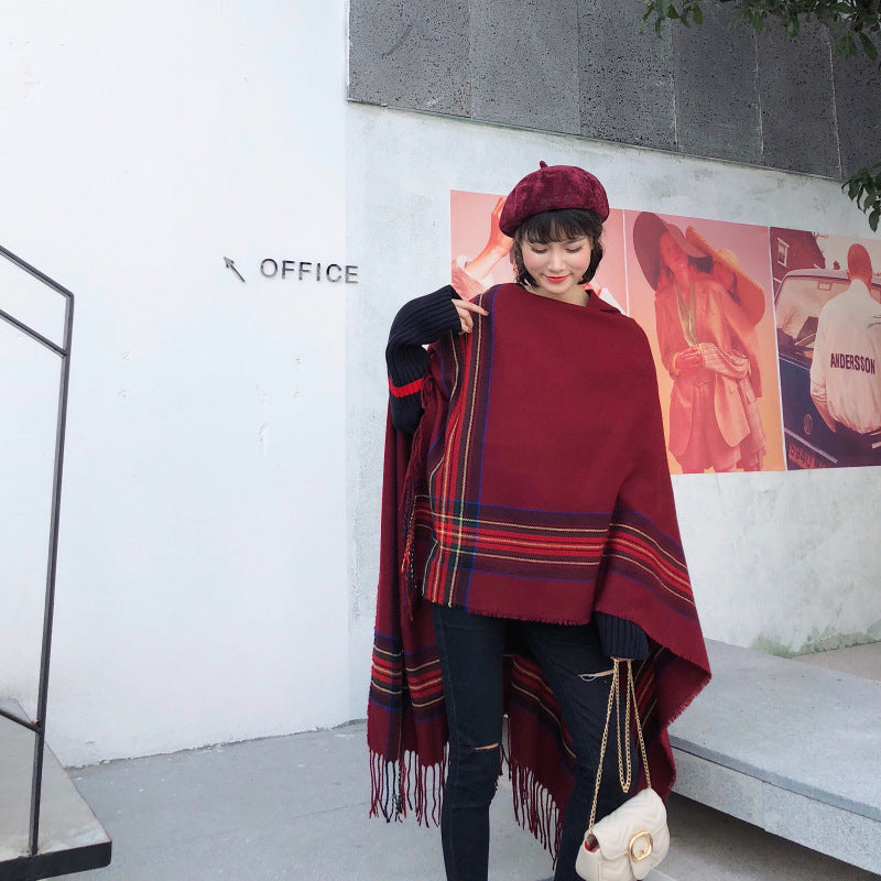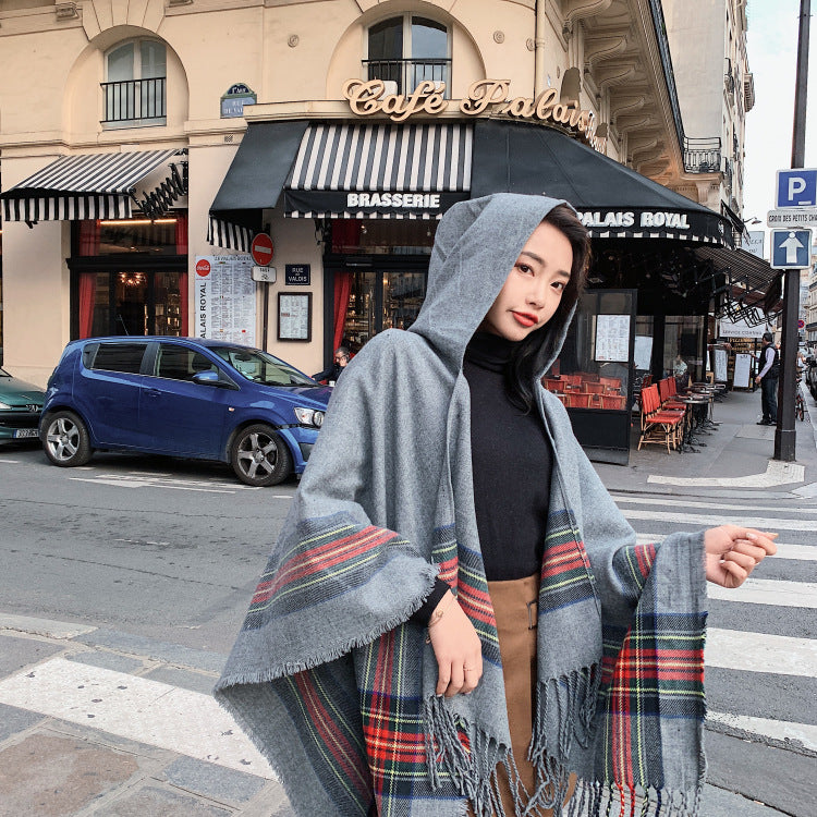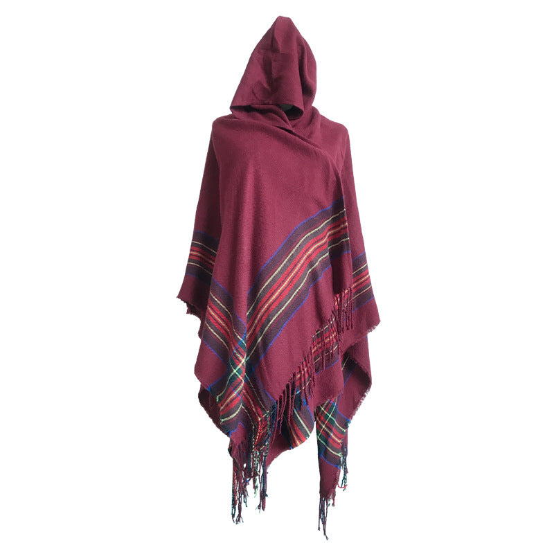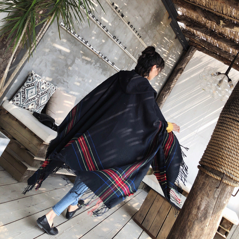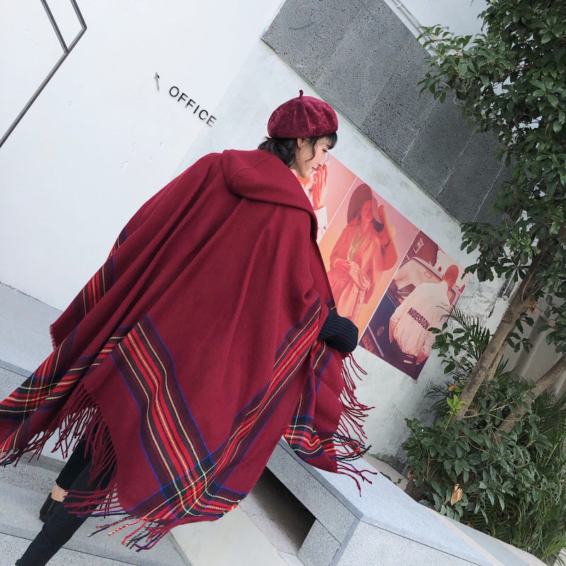 Ethnic Style Cape Shawl Women's Cape with Hat Thickened Warm Tibetan Scarf Cape Jacket