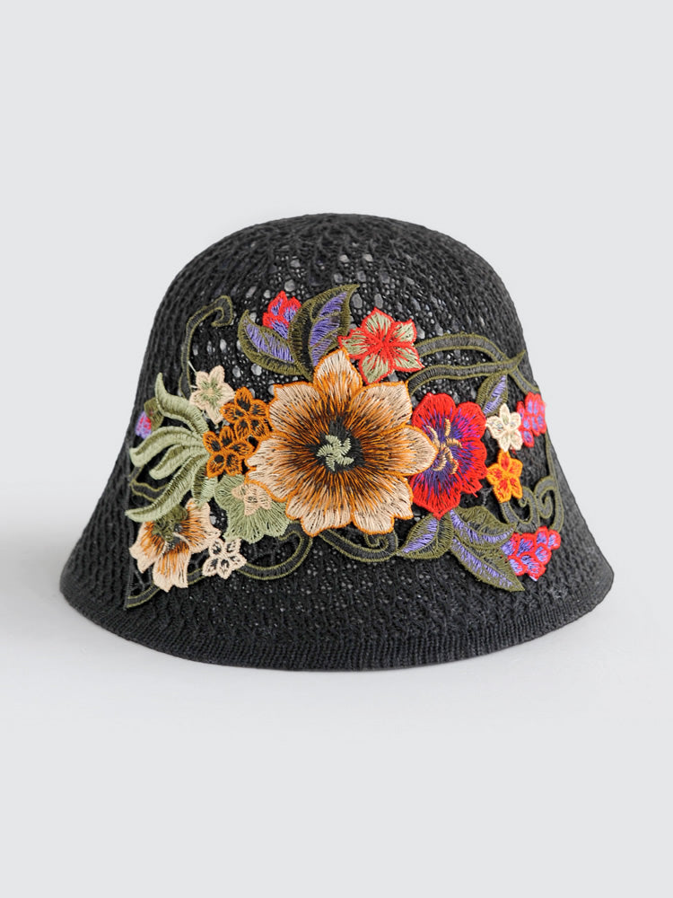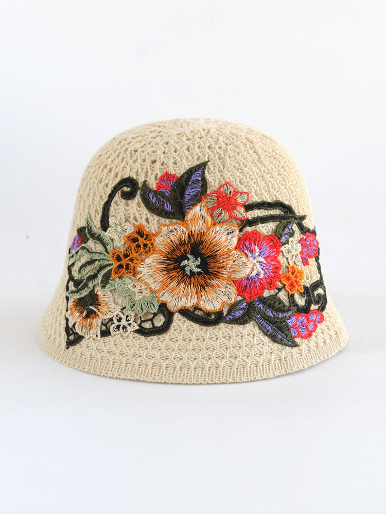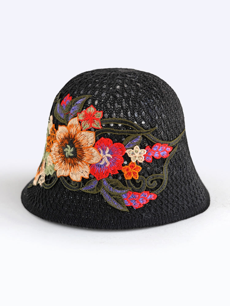 Ethnic embroidered flowers in summer breathable hollow sunscreen fisherman hat female sunshade Joker bucket hat Sun basin hat