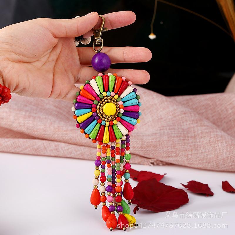 Ethnic Style Hand-woven Flower Key Chain Bag Hanging Ornaments