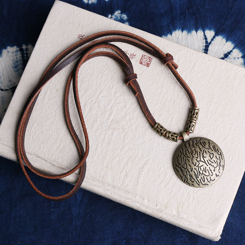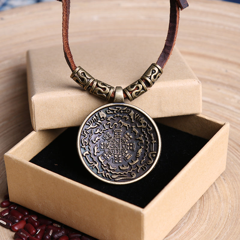 Ethnic Style Retro Round Twelve Zodiac Sweater Chain Art Versatile Necklace Pendant Fashion Pendant Accessories