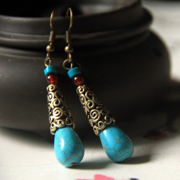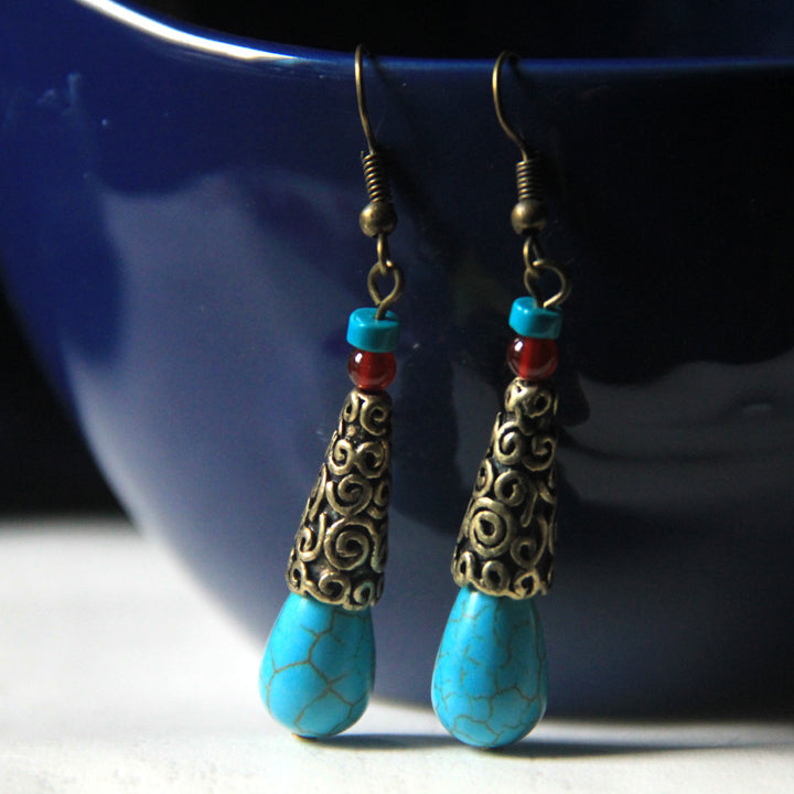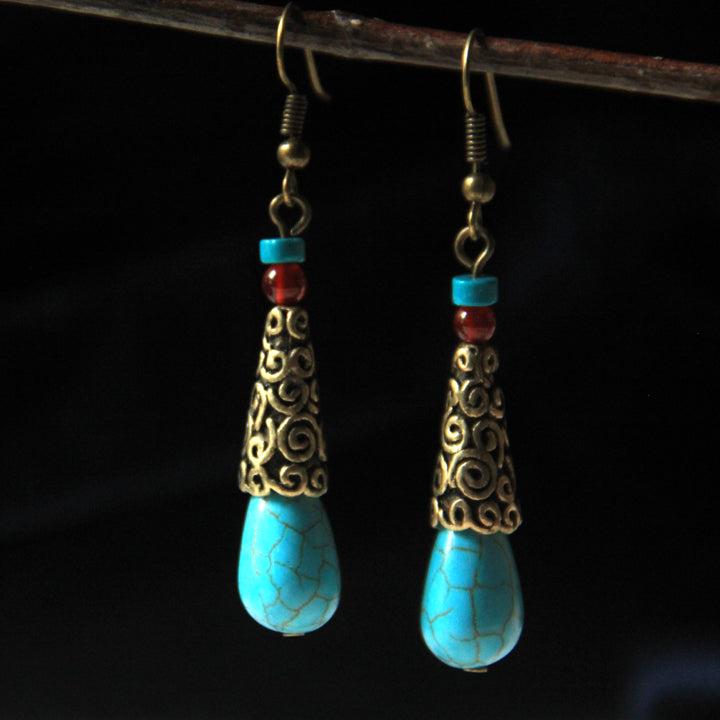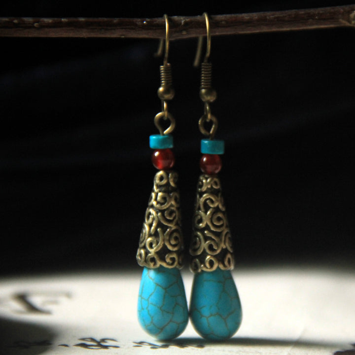 Ethnic style Tibetan Handmade retro agate pine Stone Earrings simple and elegant Earrings