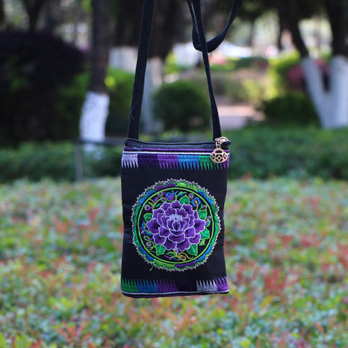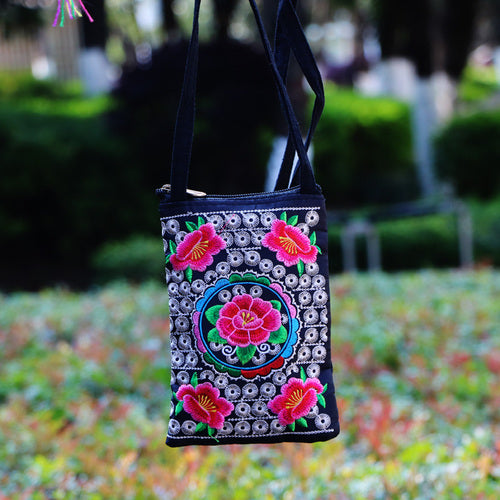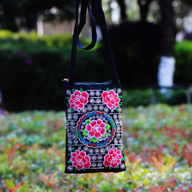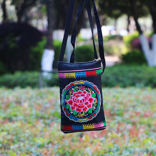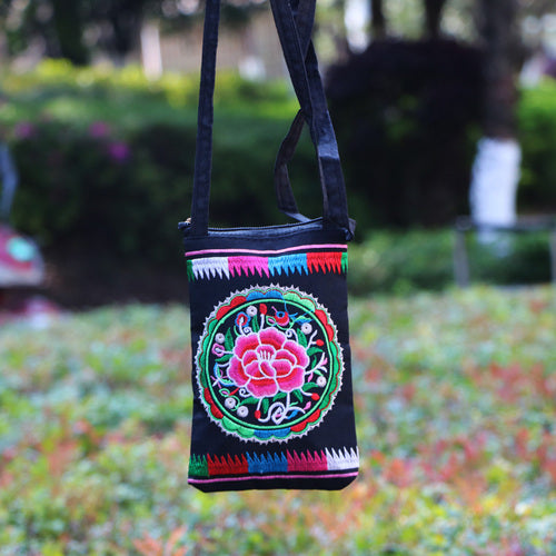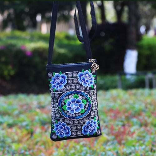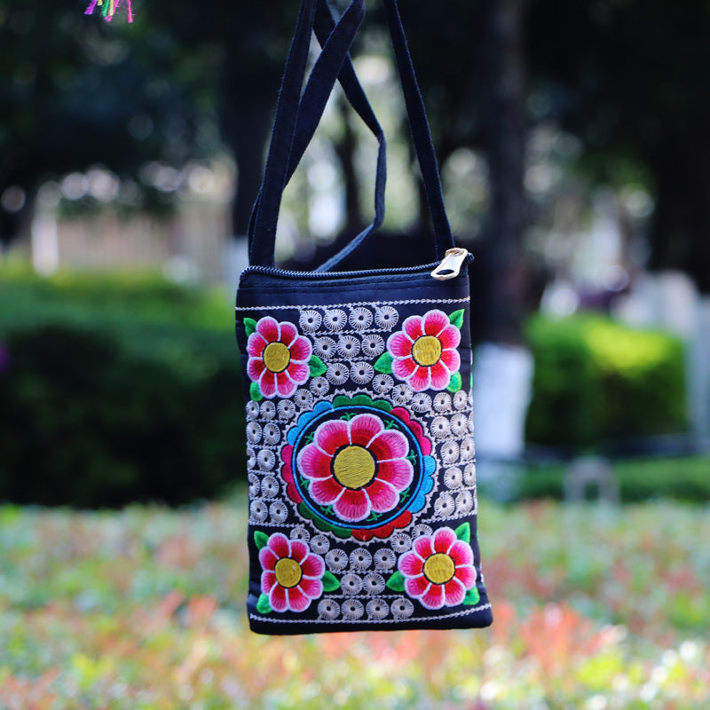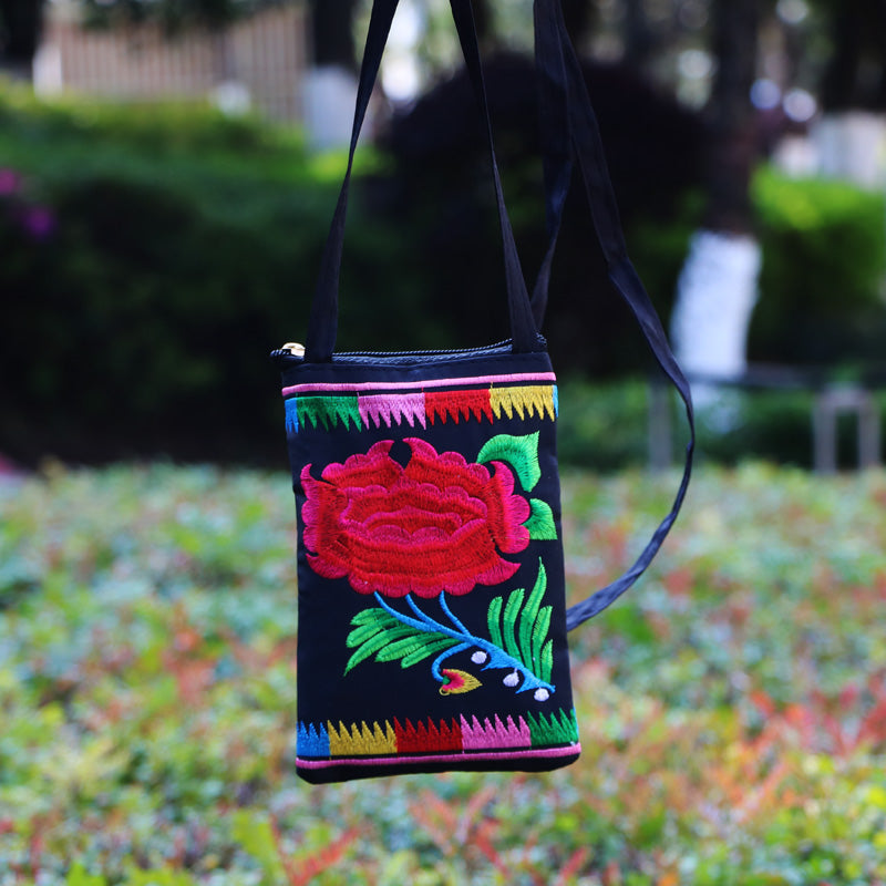 Ethnic Style Tribal Embroidery Flower Crossbody 6.5 Inch Mobile Phone Bag Hanging Neck Mobile Phone Bag