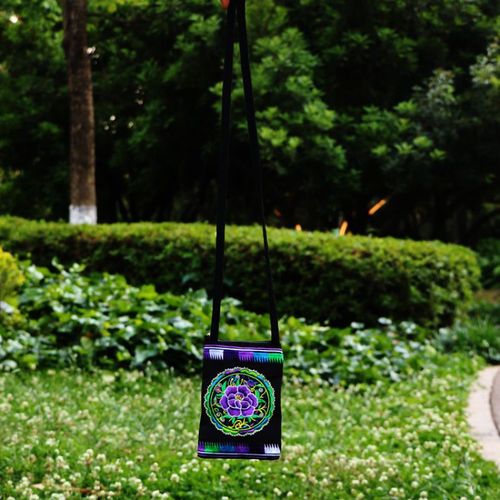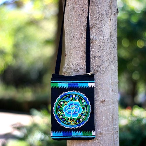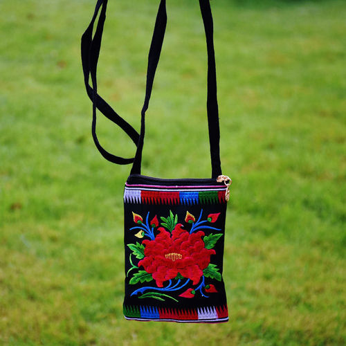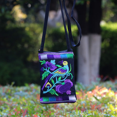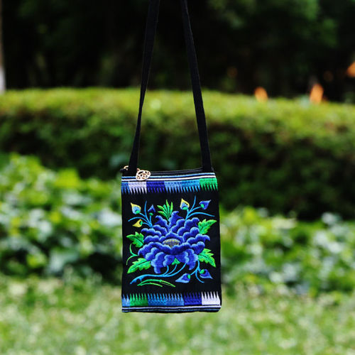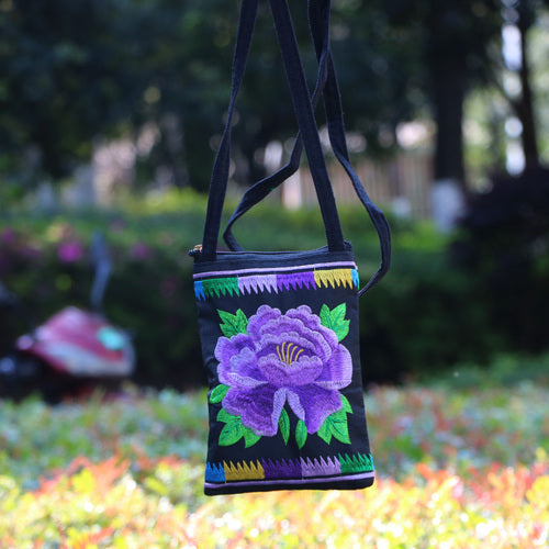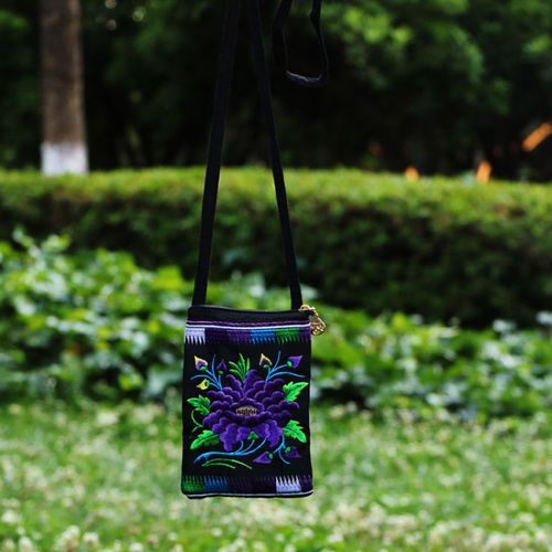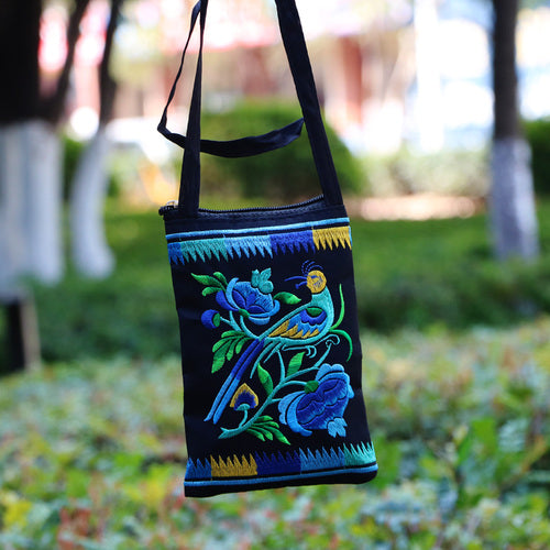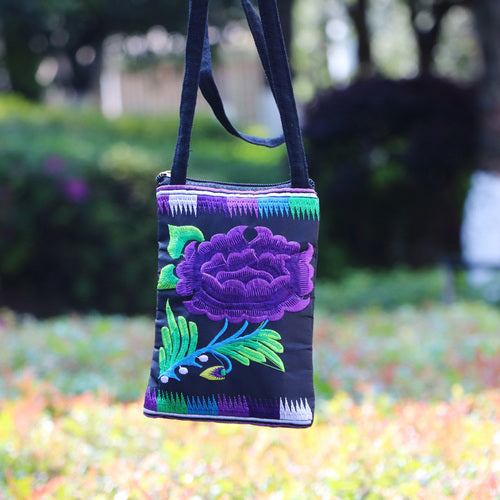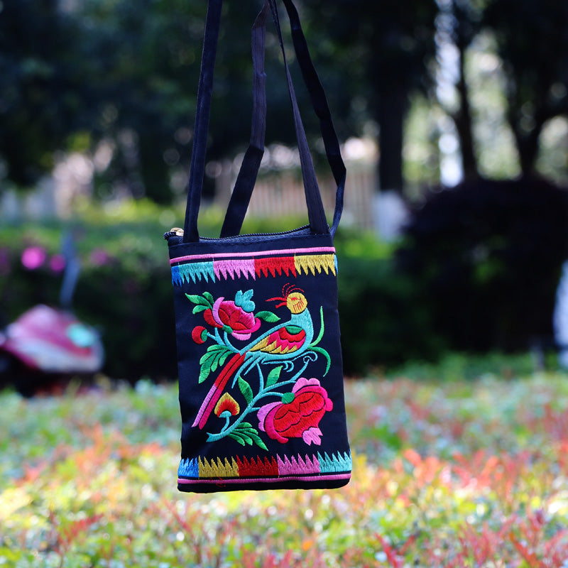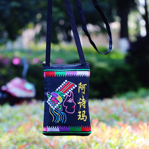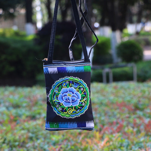 Ethnic Style Tribal Embroidery Flower Crossbody 6.5 Inch Mobile Phone Bag Hanging Neck Mobile Phone Bag