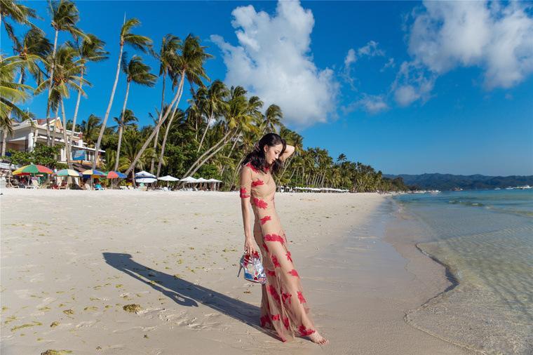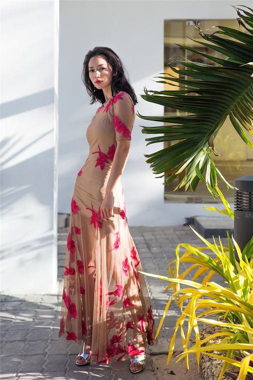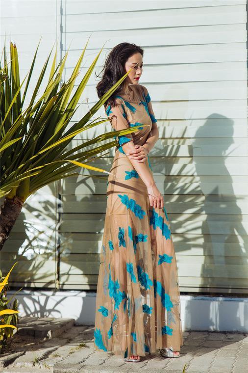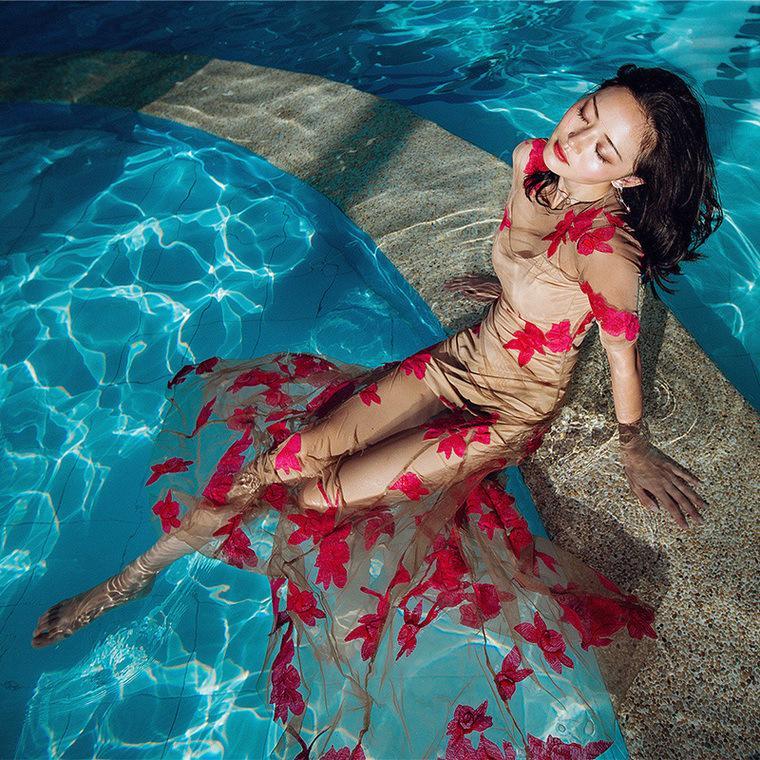 Fairy embroidery large flower skirt to mop dress skirt seaside holiday swimsuit knitz