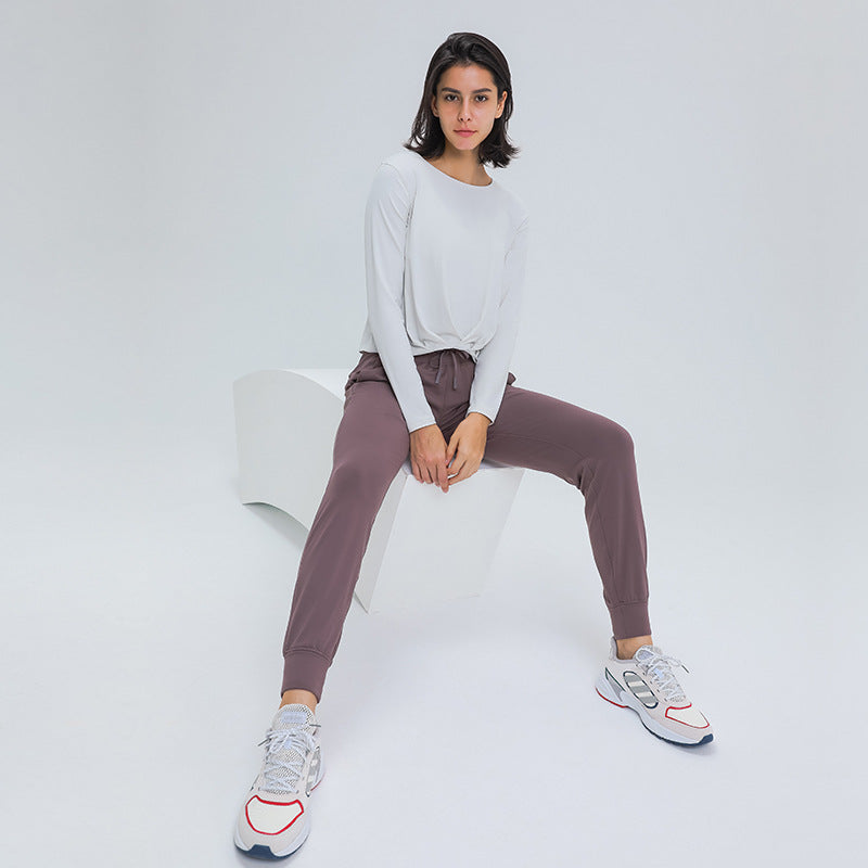 Sanding nude yoga long sleeve fashion versatile front hem pleated loose Yoga suit