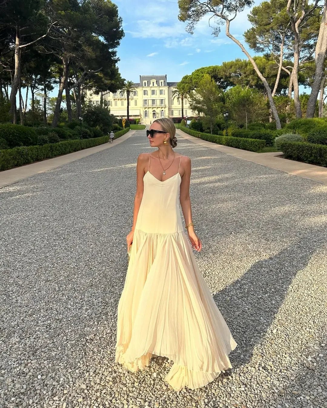 Fashion Solid Camisole Pleated Hem Women's Dress Casual Sleeveless Backless A-line Dresses 2024 Summer Lady Vacation Party Robe
