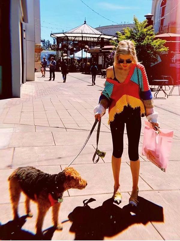 Fashion V-neck Backless Knitting Striped Rainbow Colored Sweater Tops