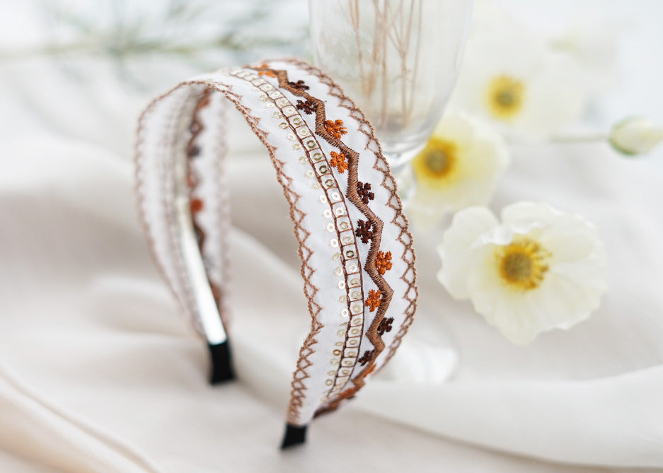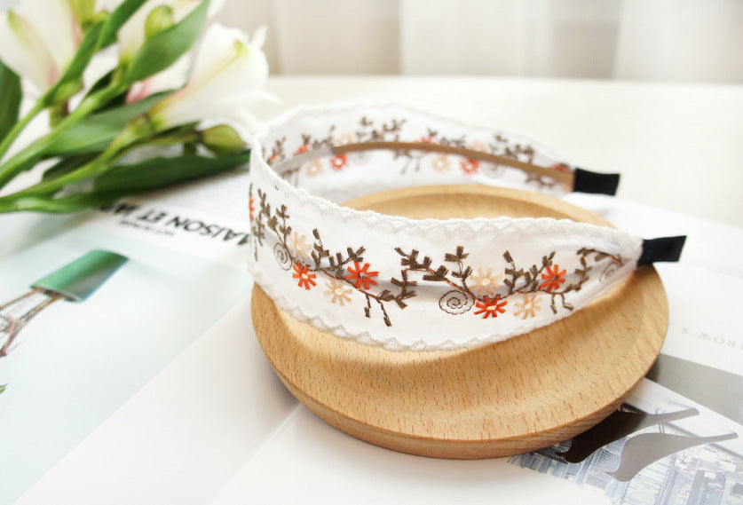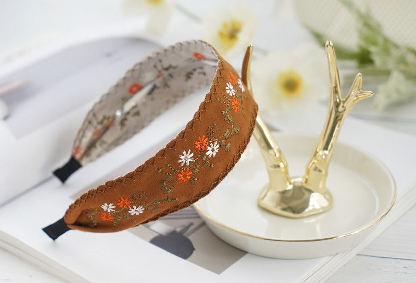 Fashionable Ethnic Style Embroidery Lace Headband Buckle, Rural Girl Style Suede Floral Fabric Headband Hair Accessories