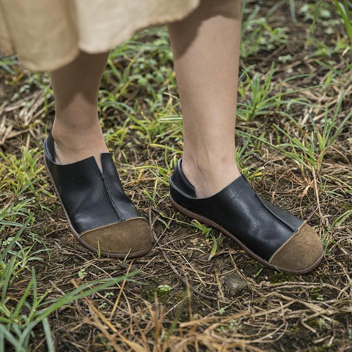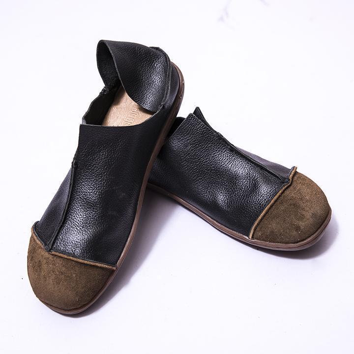 Fashionable Leather Retro Splicing Black Women Single Shoes
