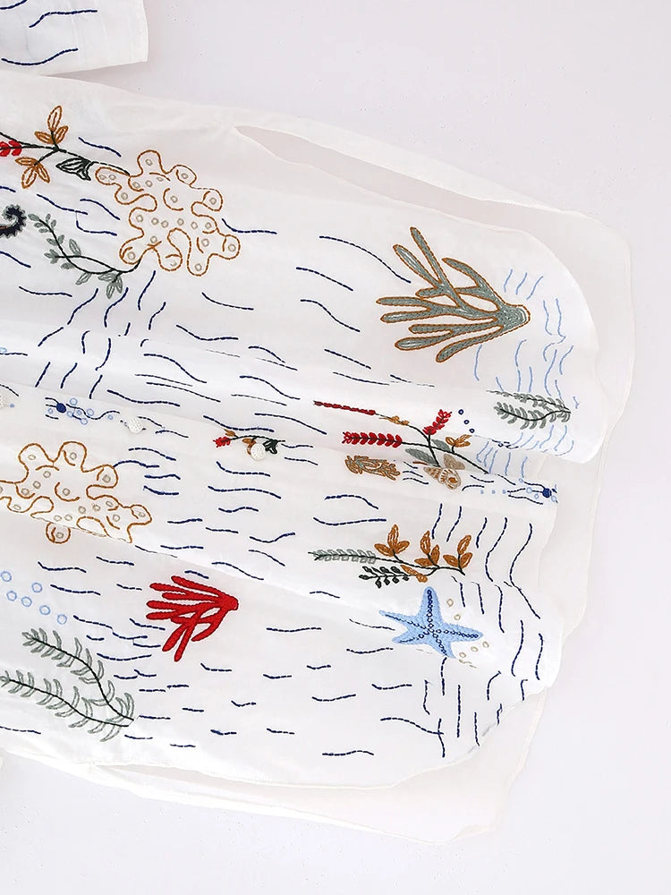 Fitshinling Bohemian Embroidery Shirt Dress Female Clothing Flower Straight Vestidos Femme Fashion Vintage Midi Dresses Women