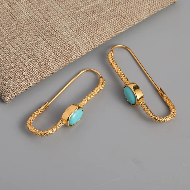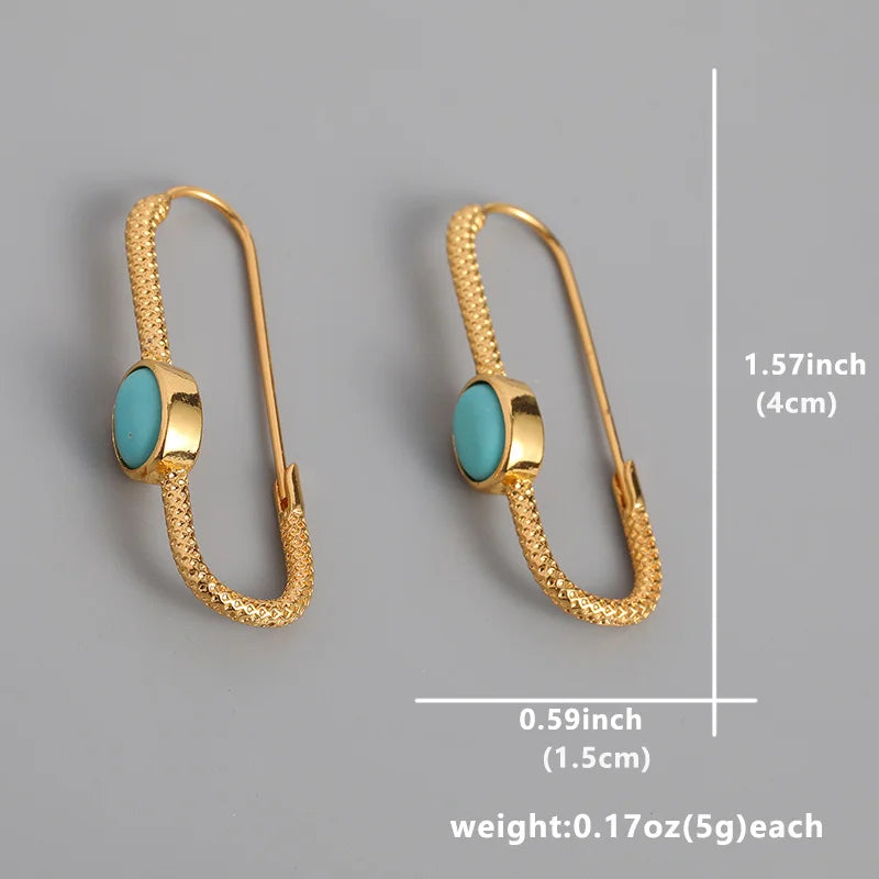 Gorgeous Turquoise Beaded Earrings - Handmade Boho Style Gold Color Metal Hoop Earrings