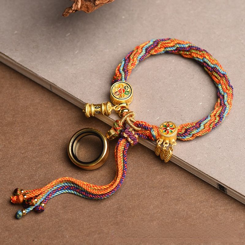 Hand-woven Tibetan wind reincarnation bracelet zakiram green tara yellow god of wealth Manjushri thangka bracelet Tibetan style bracelet