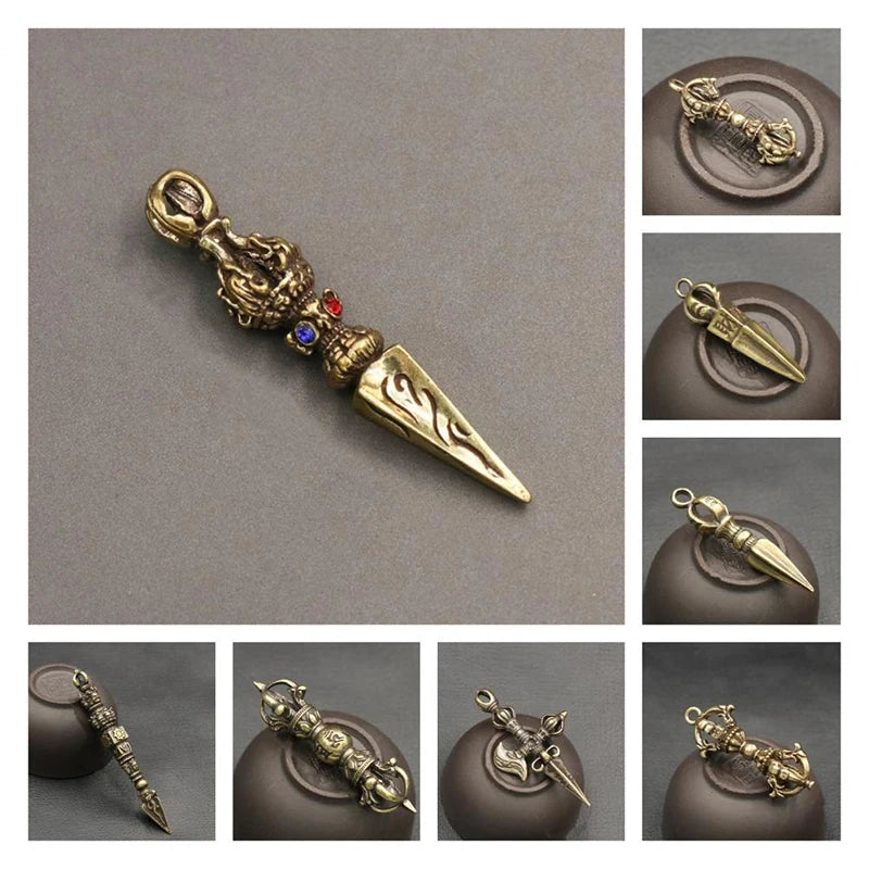 Handcraft Pendant Vintage Solid Religious Pestle Prayer Pendants Nepal Tibetan Handcraft Buddhist Vajra Pestle Copper Crafts