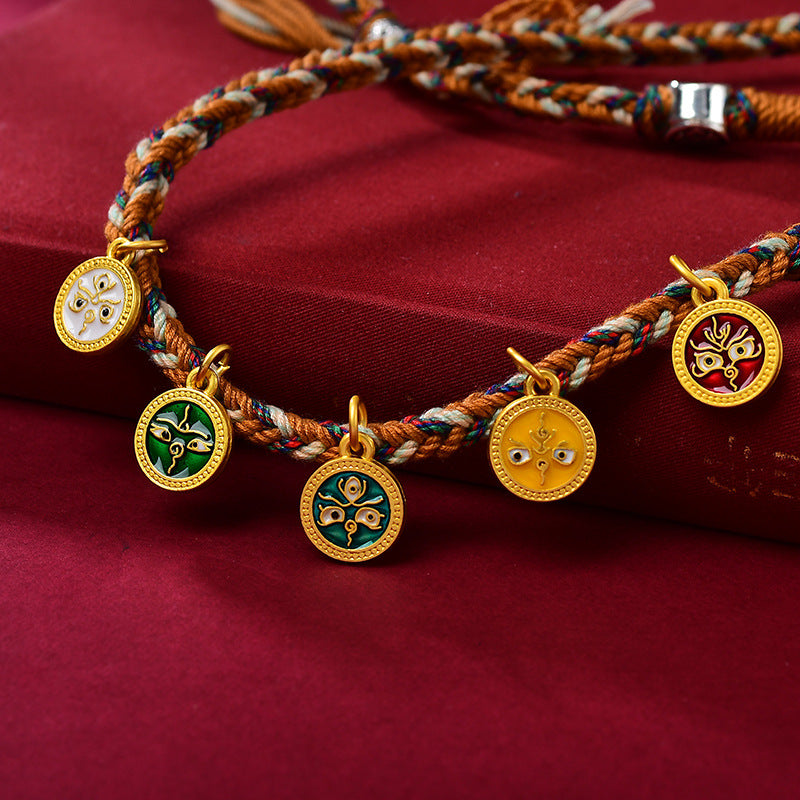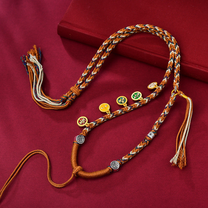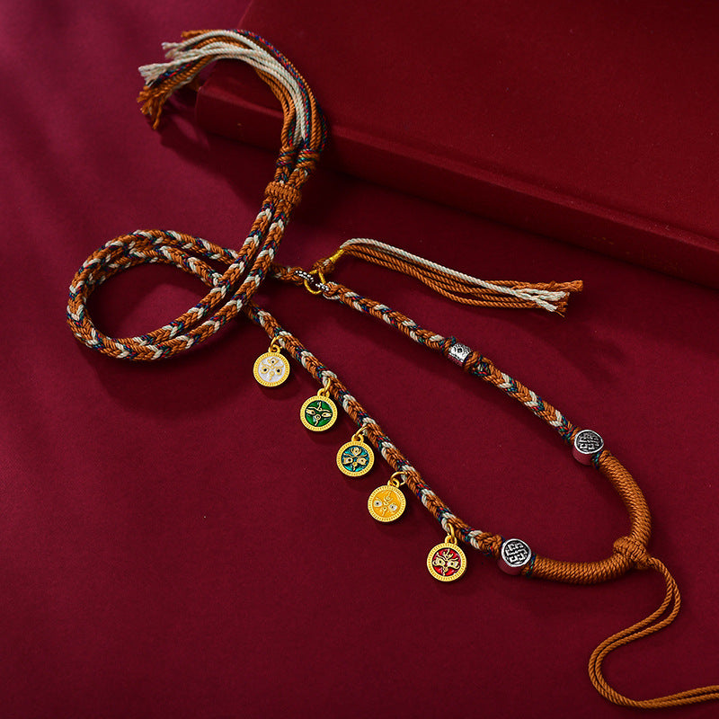 Hand-woven Tibetan Pendant Rope Five-way God of Wealth Thangka Necklace