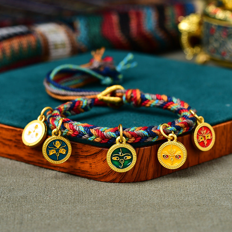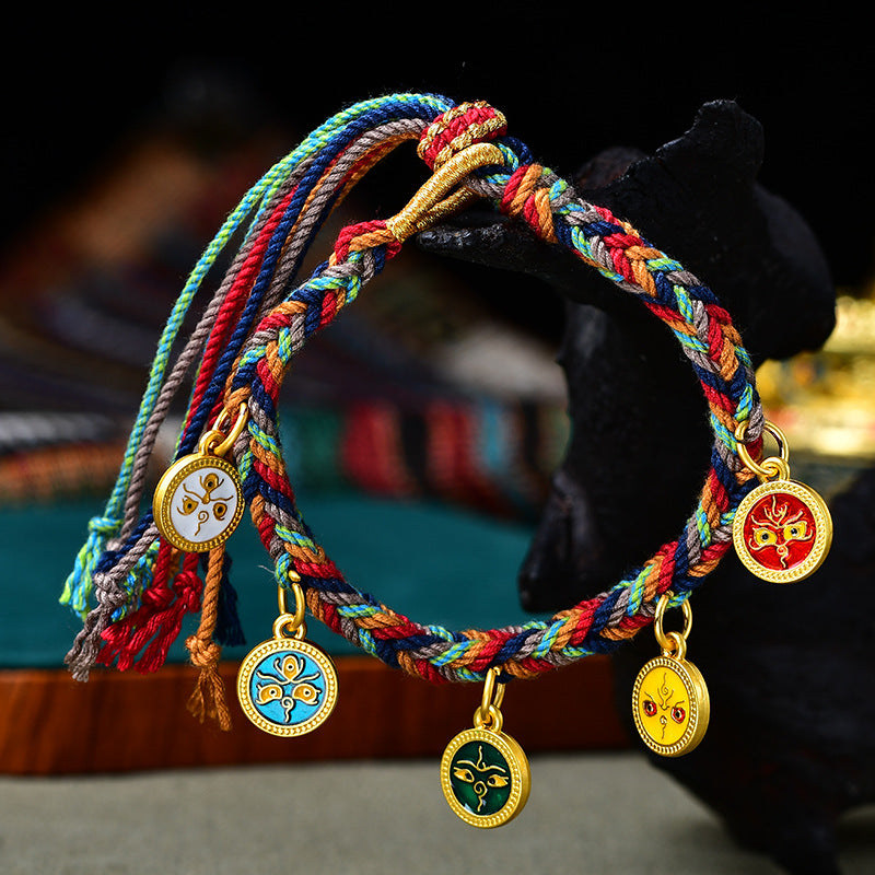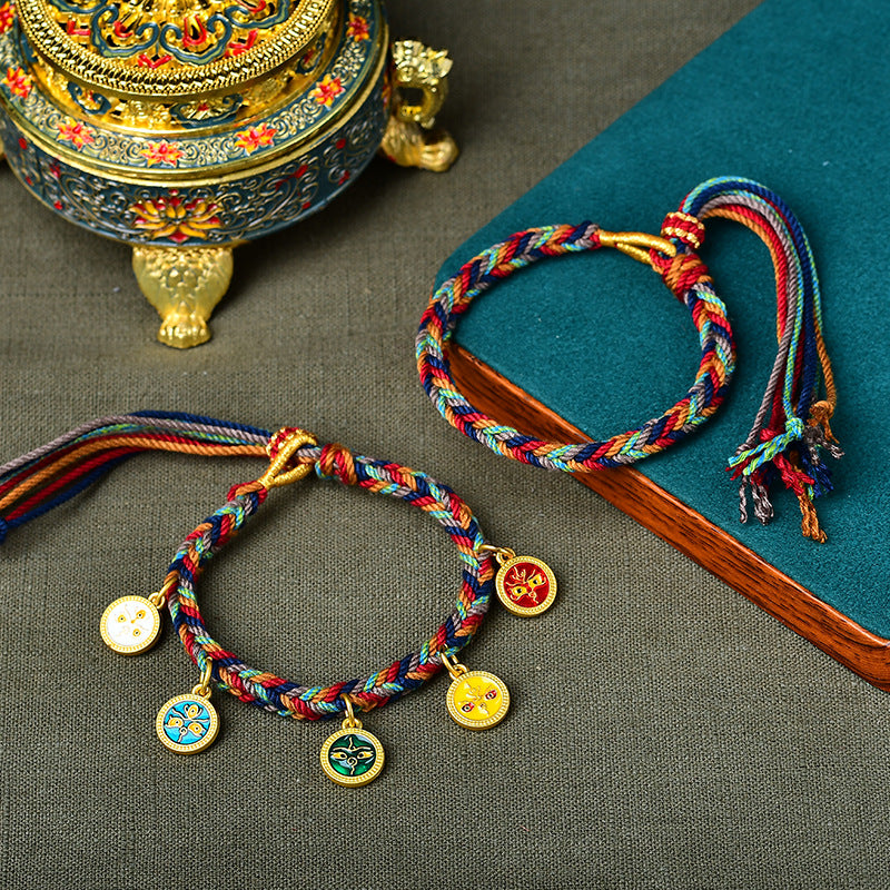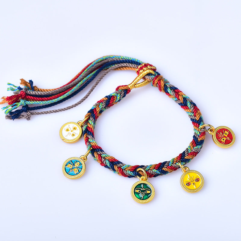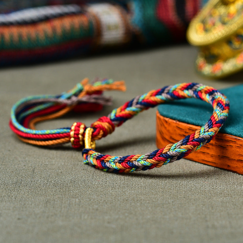 Hand-woven Tibetan Five-way Hand Rope Hand-rubbed Cotton Four-strand Bracelet Jewelry Retro Ethnic Style Bracelets for Men and Women.