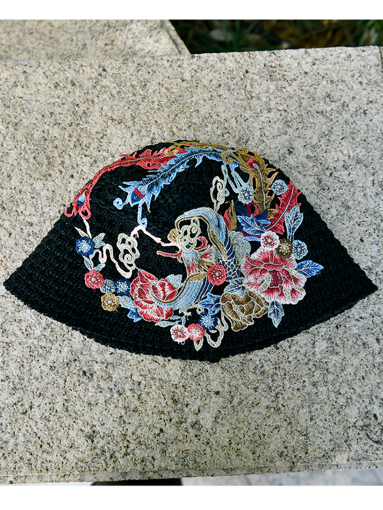 Spring Summer Fisherman Hat Embroidered Big Head Cover Face UV Protection Hat Big Brim Sun Hat, Outdoor Hat