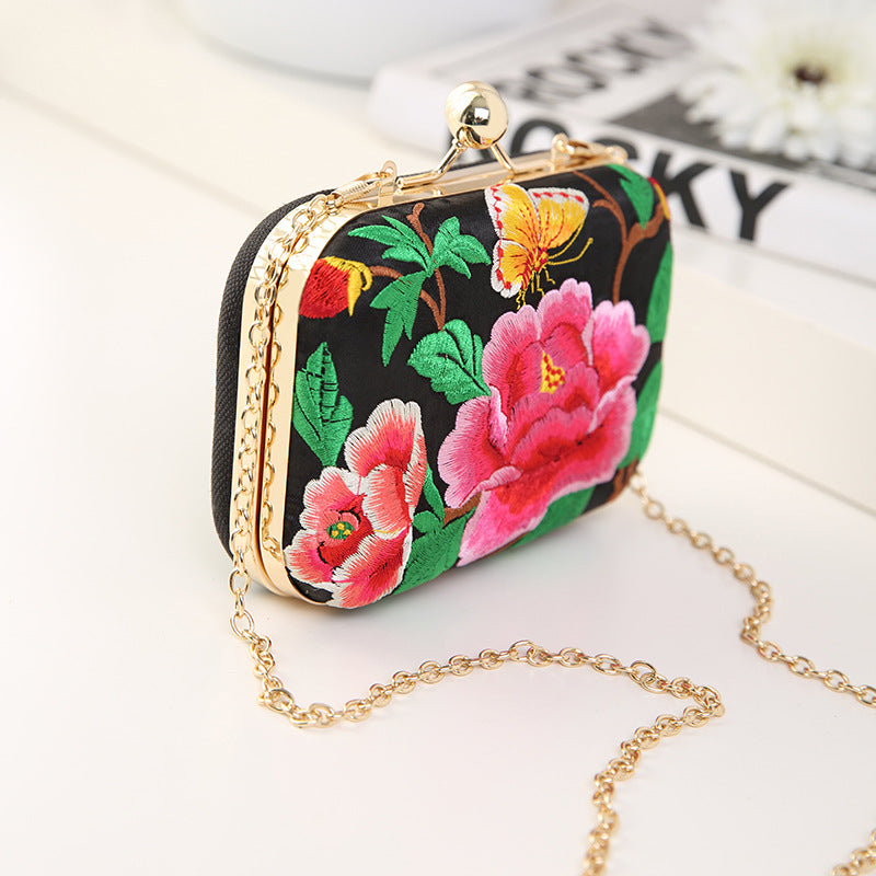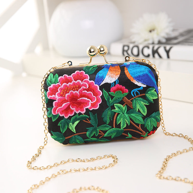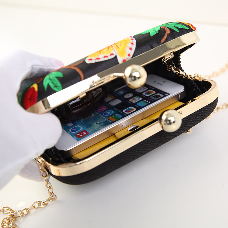 Shoulder Slung Embroidery Chain Female Embroidery Dinner Bag.