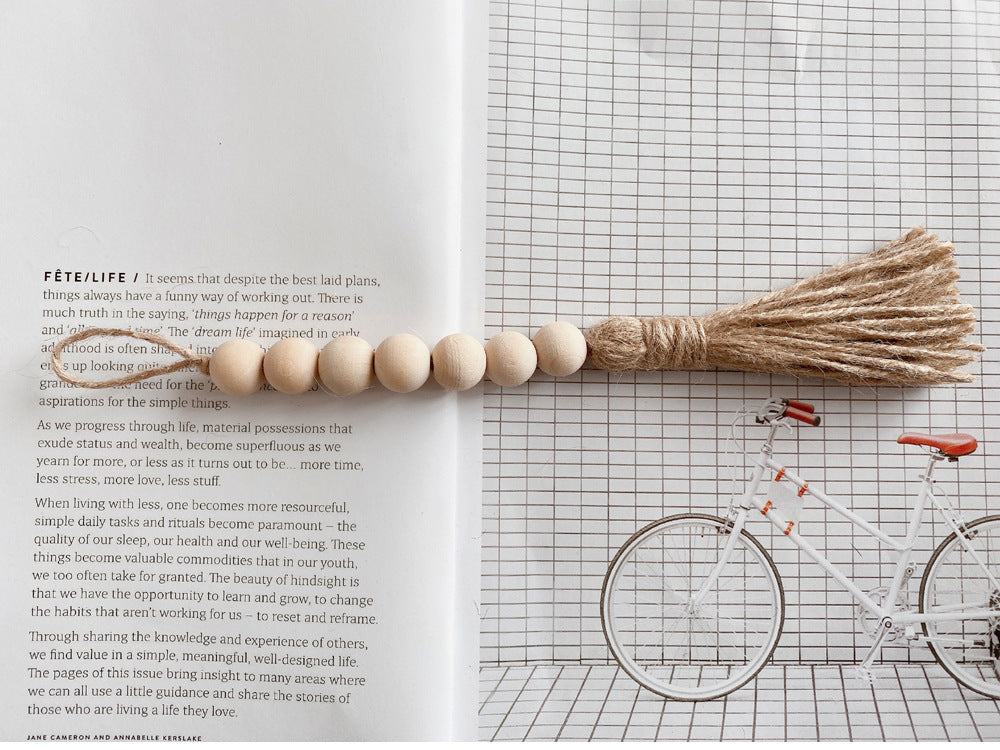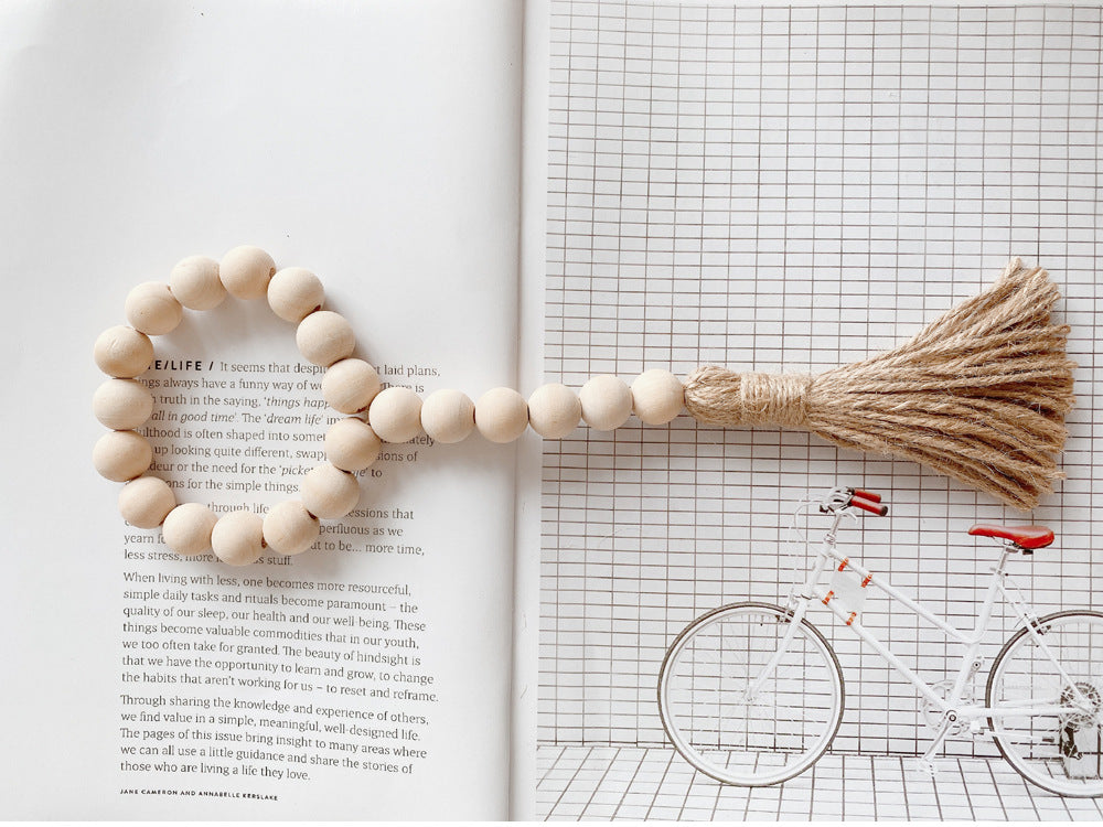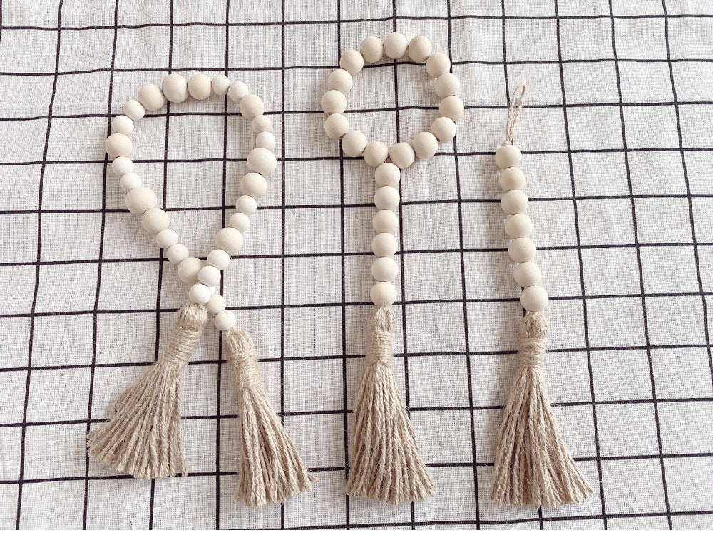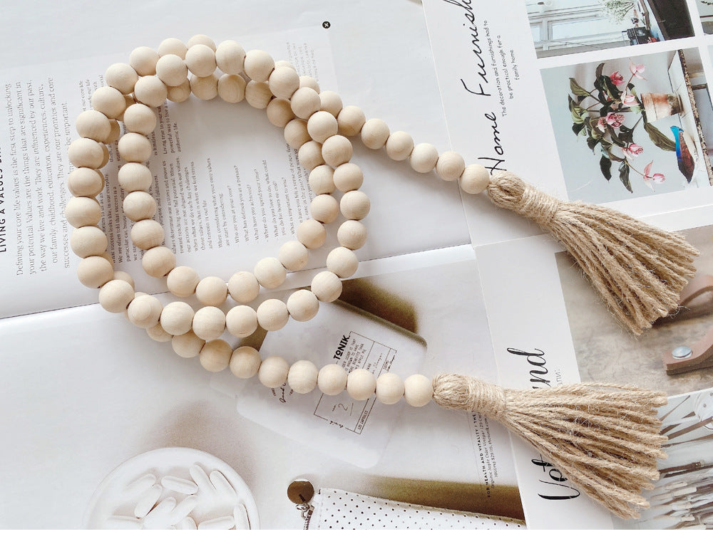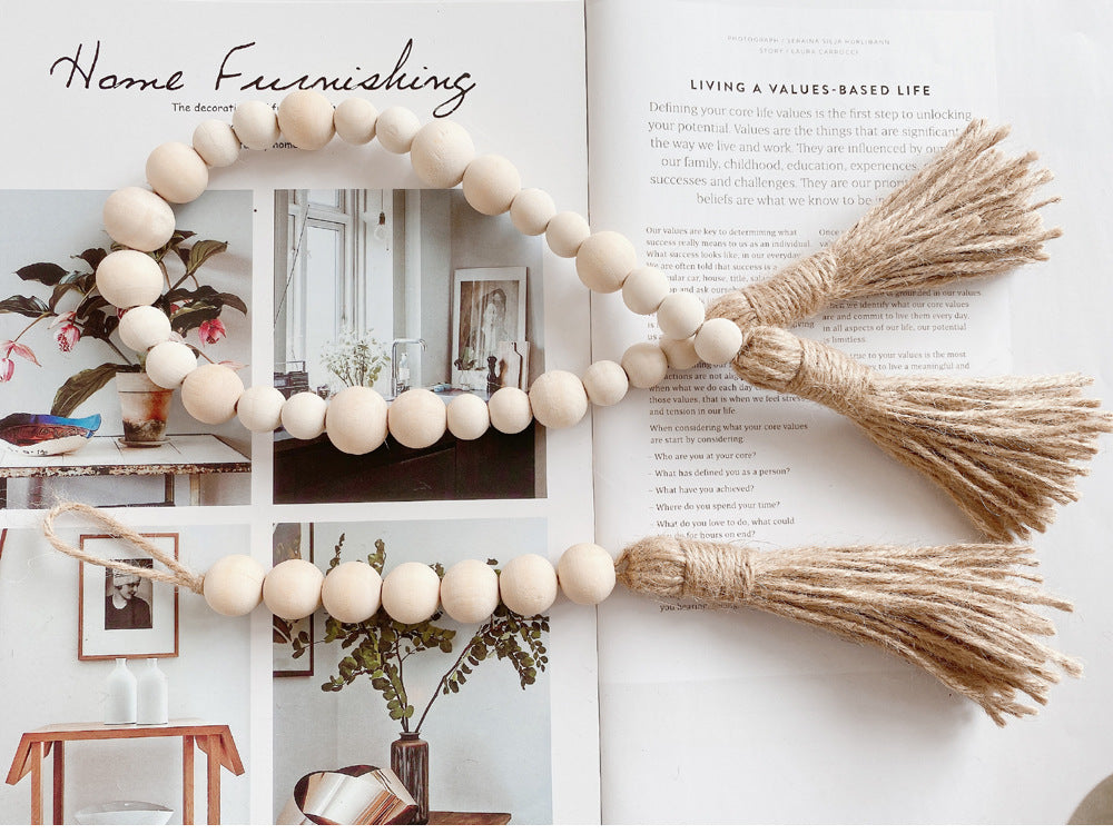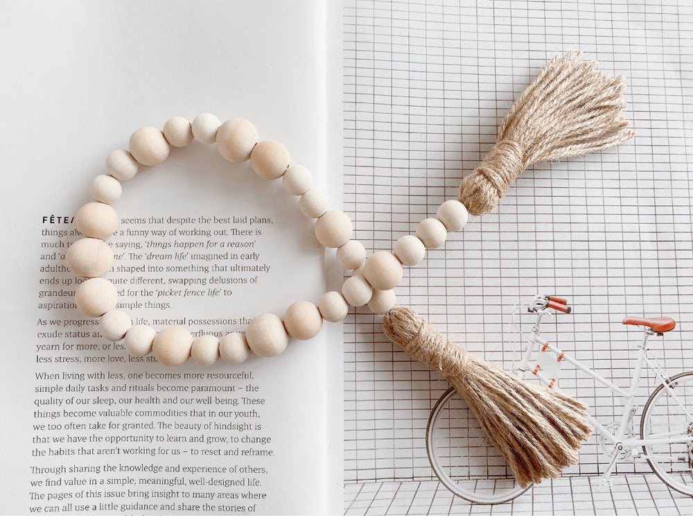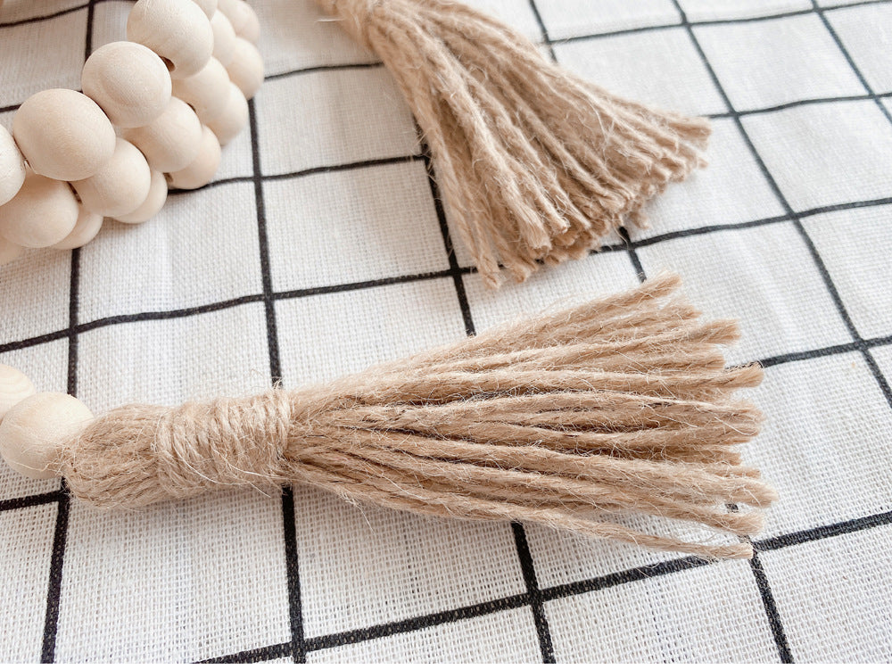 Log color tassel Wood Bead Pendant DIY handmade jewelry accessories string hemp rope Home Decoration pendant