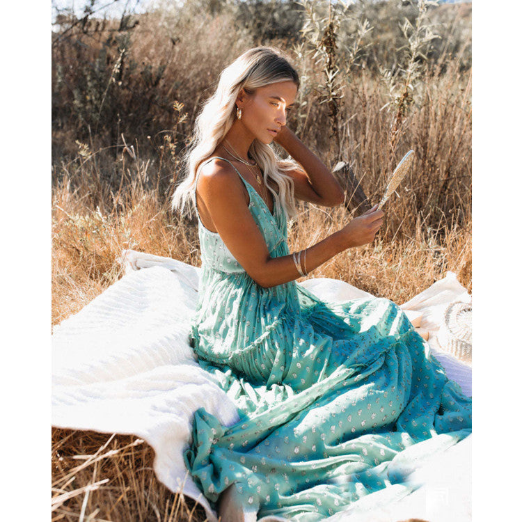 Summer casual women's leopard print fresh suspender sleeveless V-neck pleated dress
