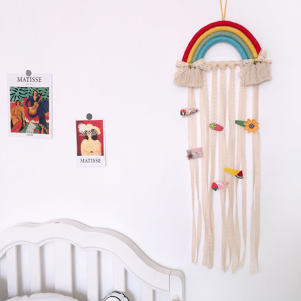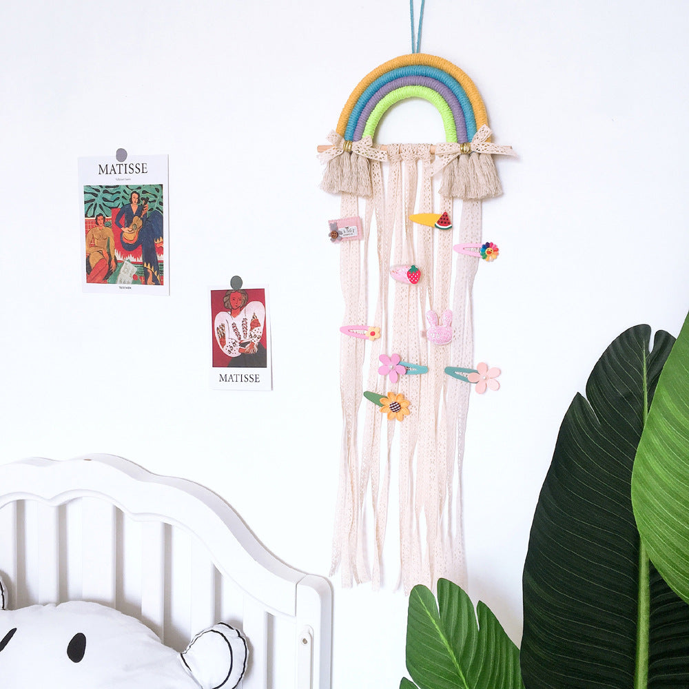 Woven Rainbow Children's Hairpin Hair Accessories Storage Belt Wall-mounted Headwear Finishing Belt Organizer