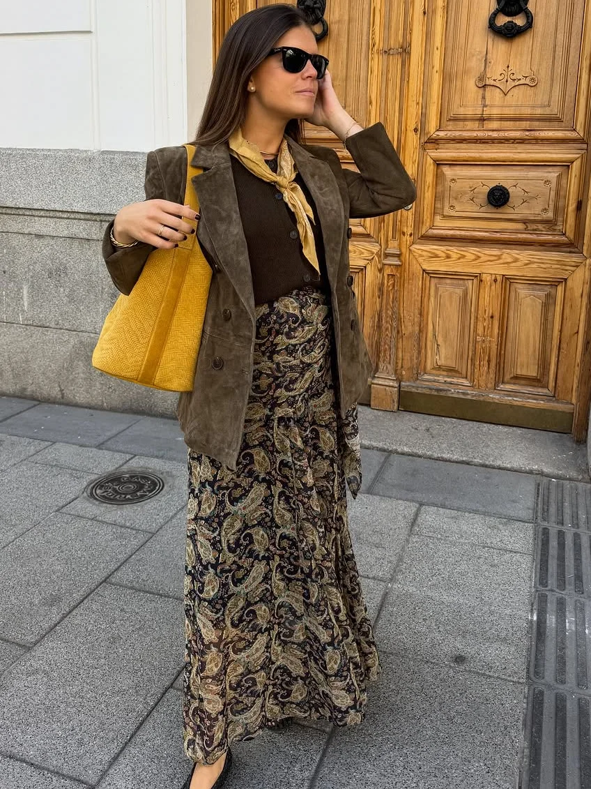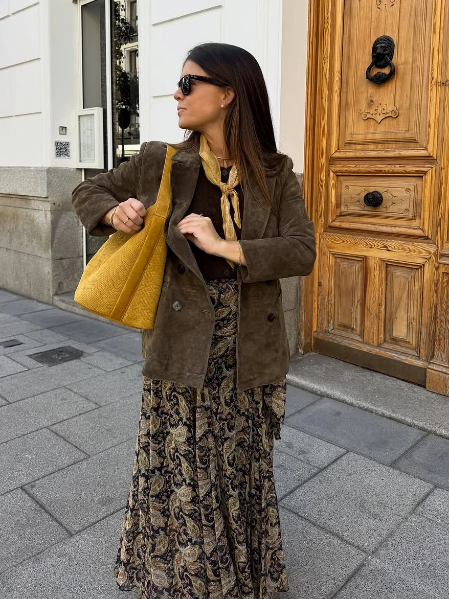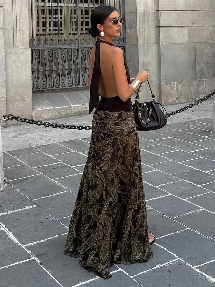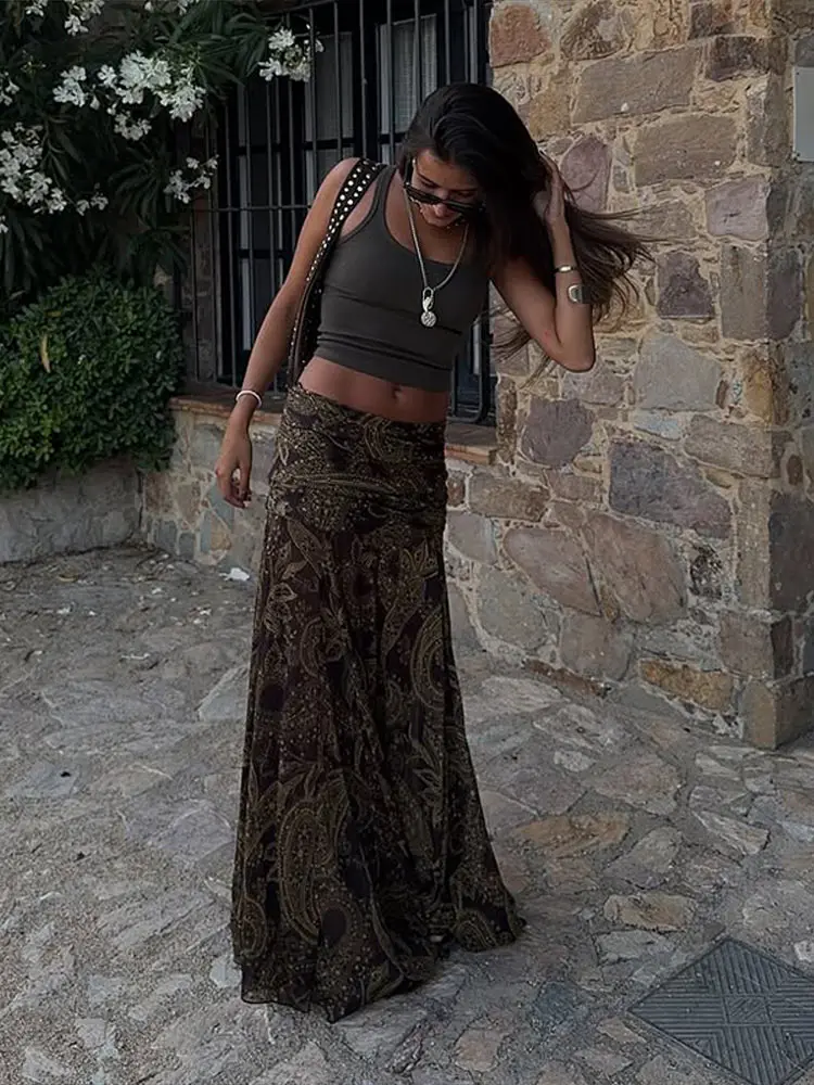Indulge in the allure of bohemian fashion with our stunning paisley maxi skirt. Adorned with intricate paisley patterns in rich, earthy tones, this skirt exudes a sense of timeless elegance and free - spirited charm. The high - waisted design accentuates your curves, while the flowing silhouette creates a graceful and ethereal look as you move.