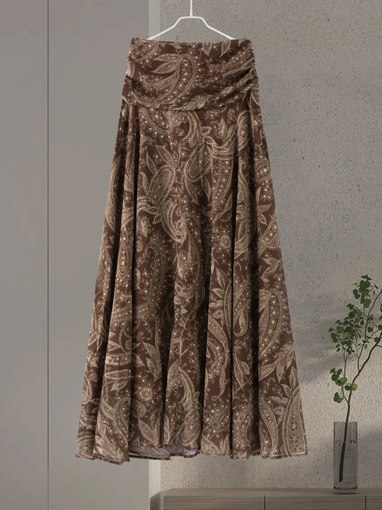 The carefully designed paisley print features fine lines and detailed motifs, adding an artistic touch. The skirt also has a comfortable elastic waistband or a stylish wrap - around design (depending on the specific style), ensuring a perfect fit for various body shapes.