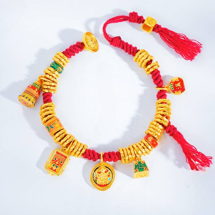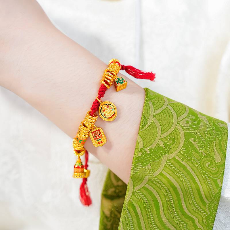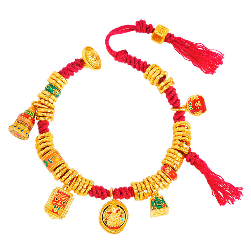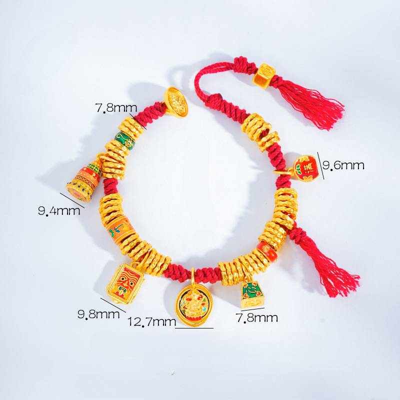 Sand Gold Tibetan Zakiram Bracelet, New Tibetan Style, Red Entangled Hand Rope