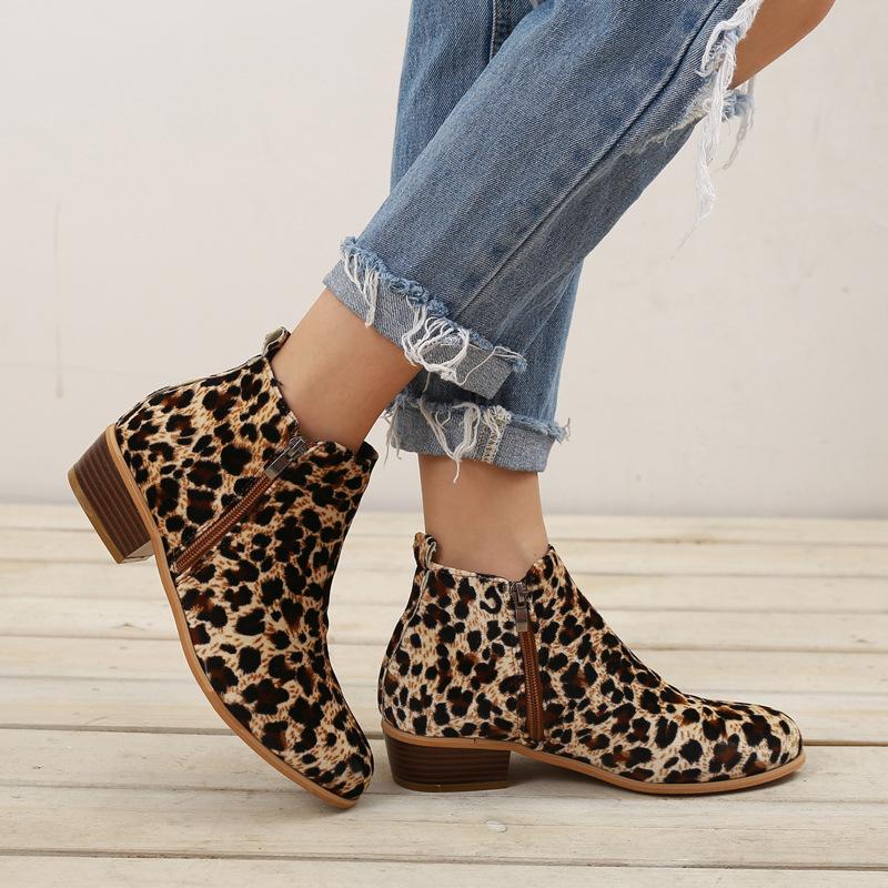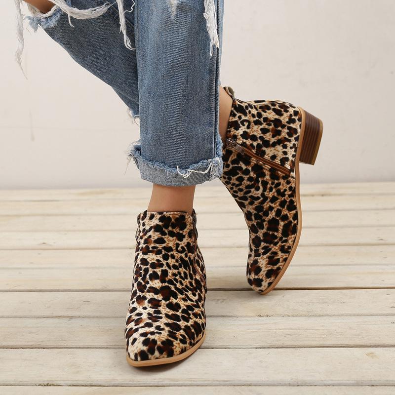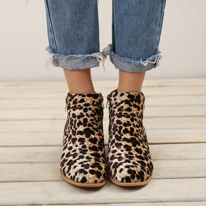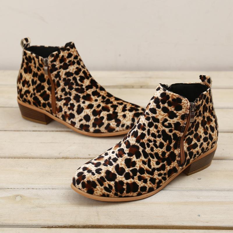 Women Chelsea Boots Spring Autumn Sexy Leopard Low Heels Platform Martin Ankle Boots Ladies Pu Leather Vintage Western Shoes